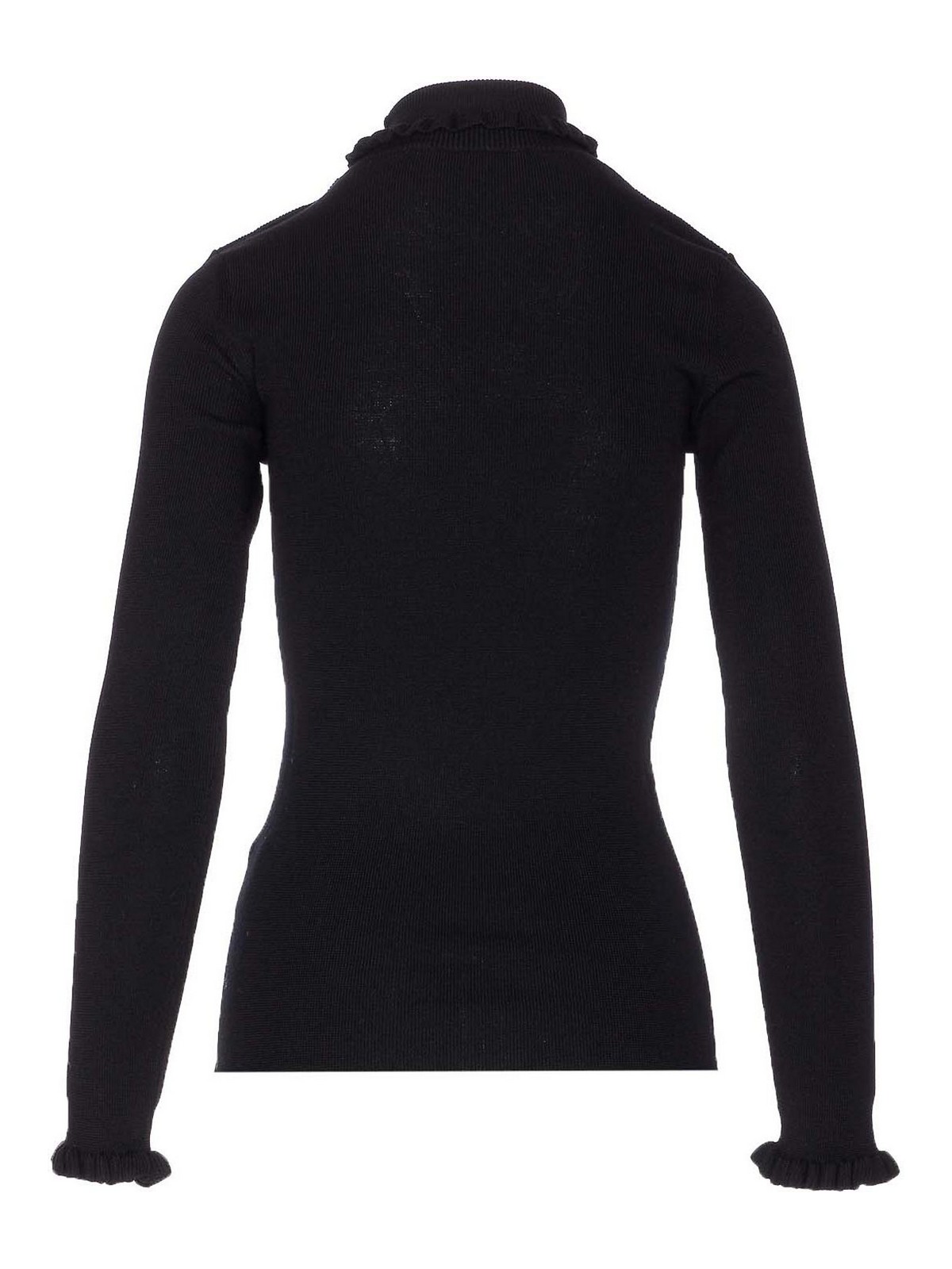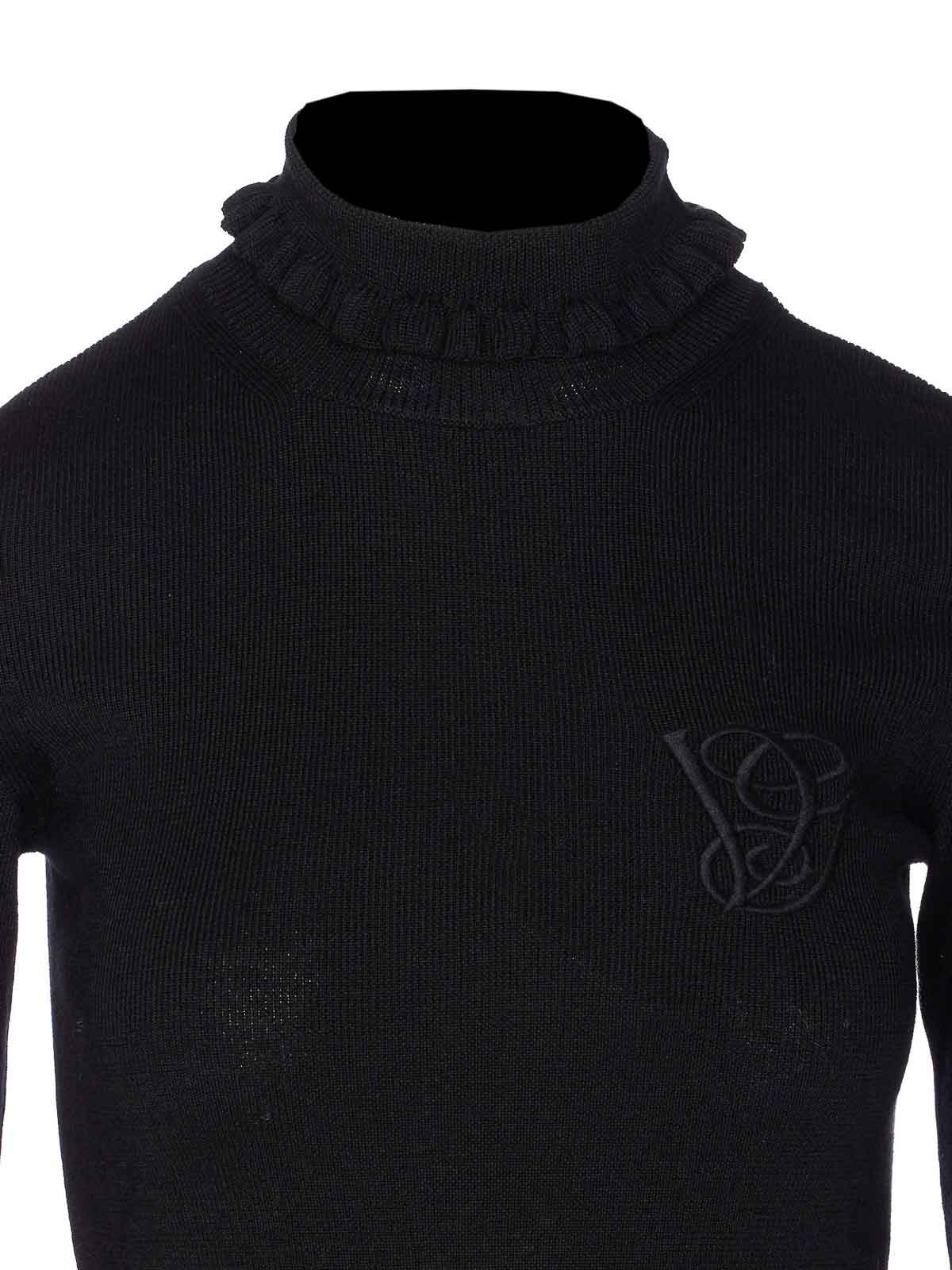 Valentino Garavani Black Logo Sighiple Profili arruffati con logo ricamato su Turtleneck VG