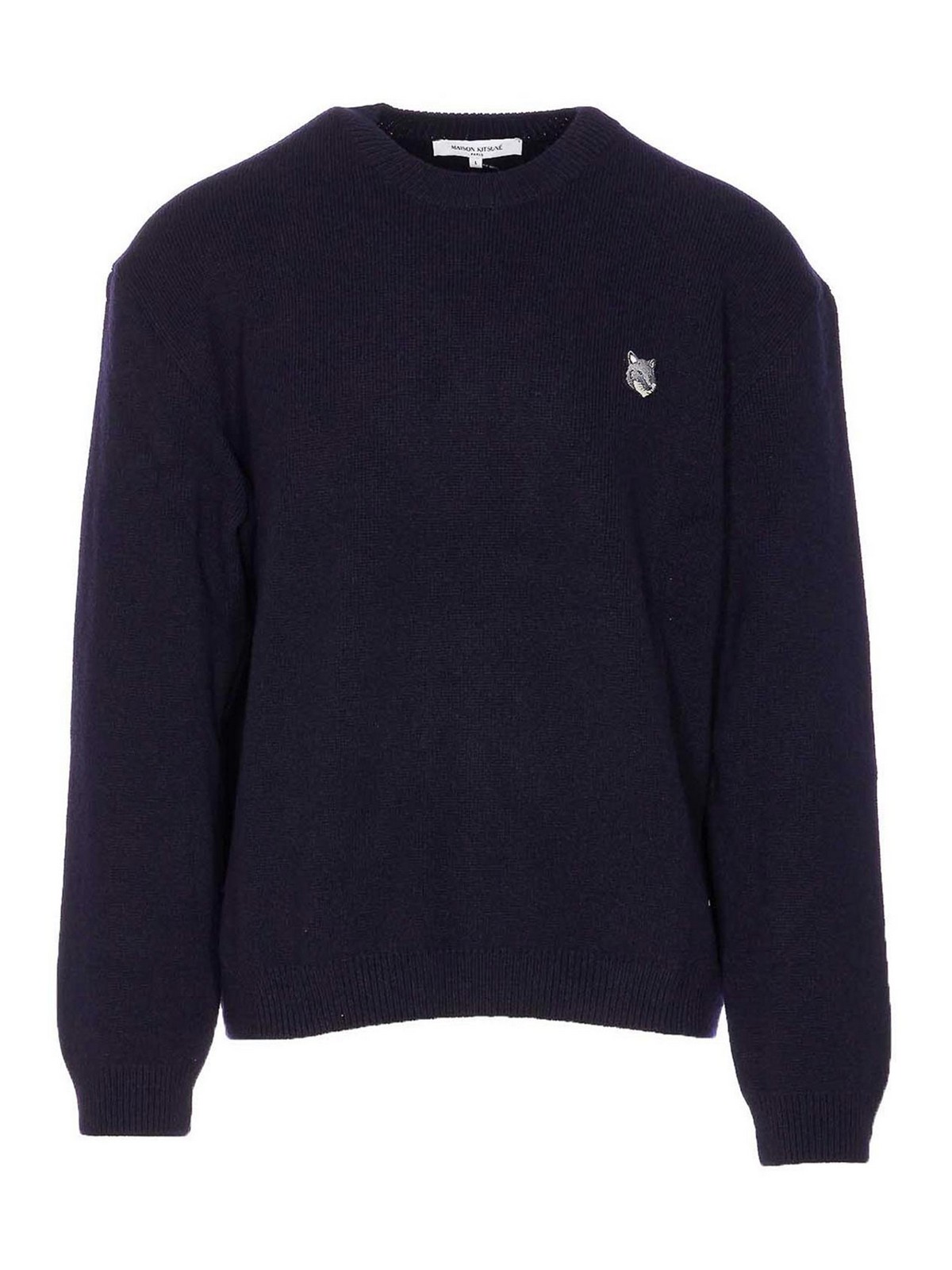 Maglia milano Maison kitsune' testa di volpe blu, girocollo, maniche lunghe