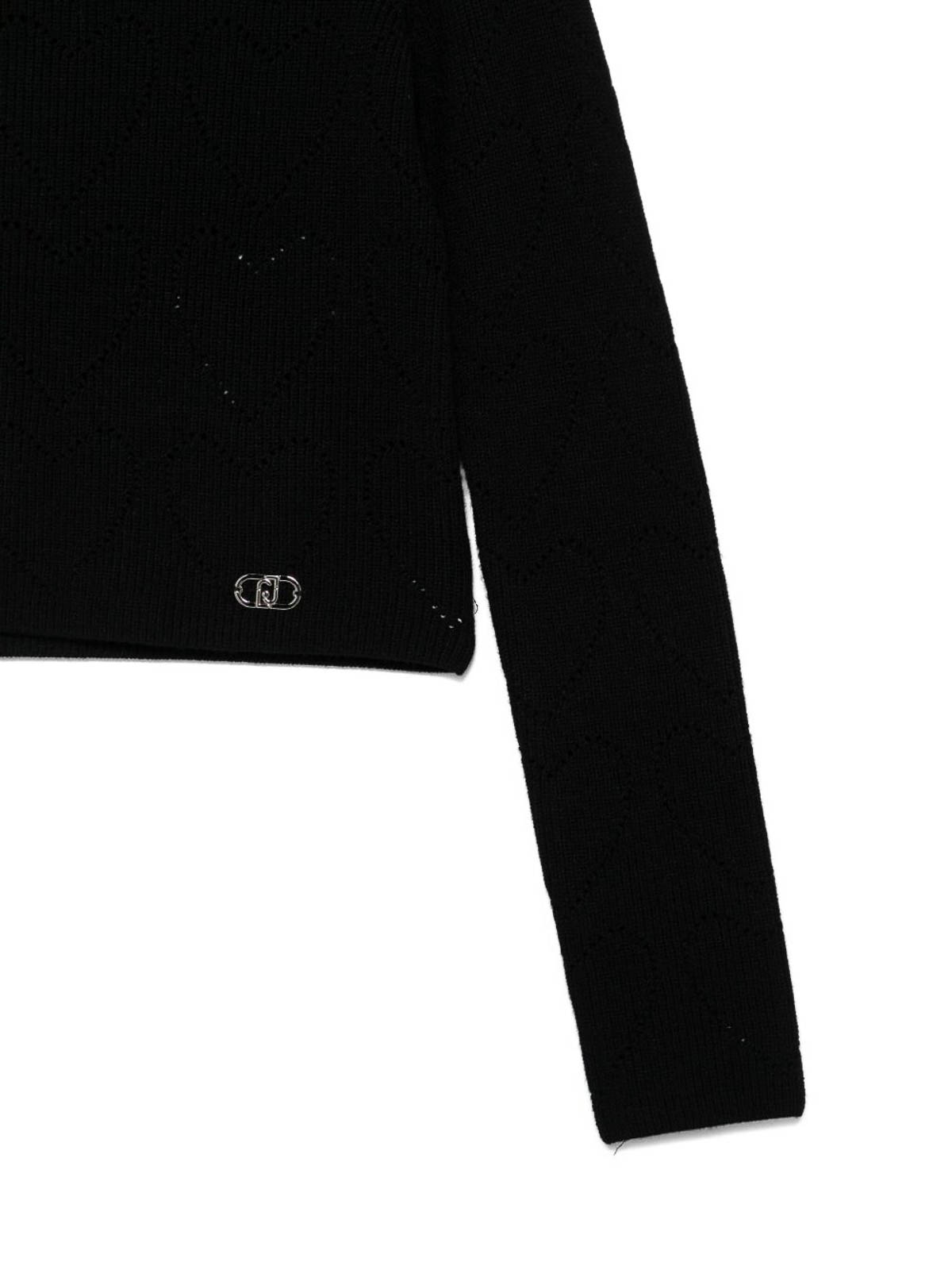 Liu Jo: maglia collo rotondo - Maglione nero a maniche lunghe con logo