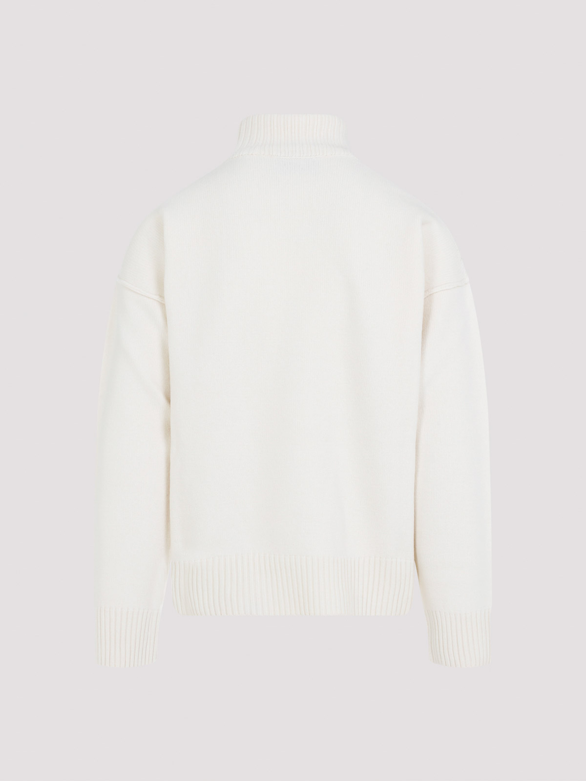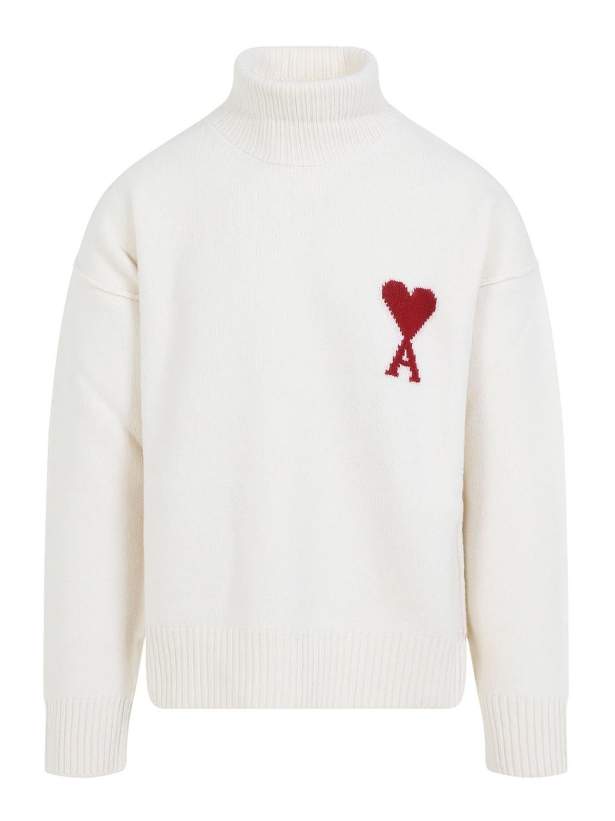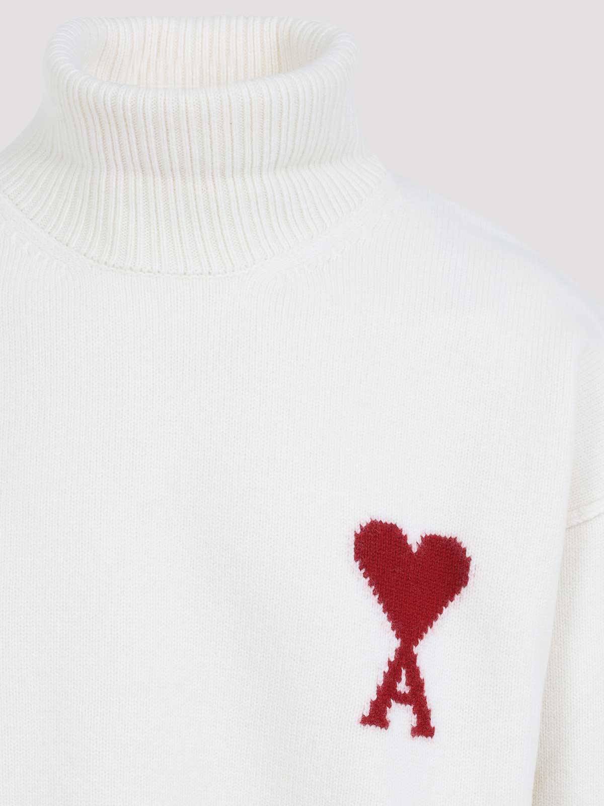 AMI ADC Funnel Neck Off White and Red Miti realizzato con logo a contrasto rosso in intarsia bianco intarsia sul torace a maniche lunghe a maniche lunghe