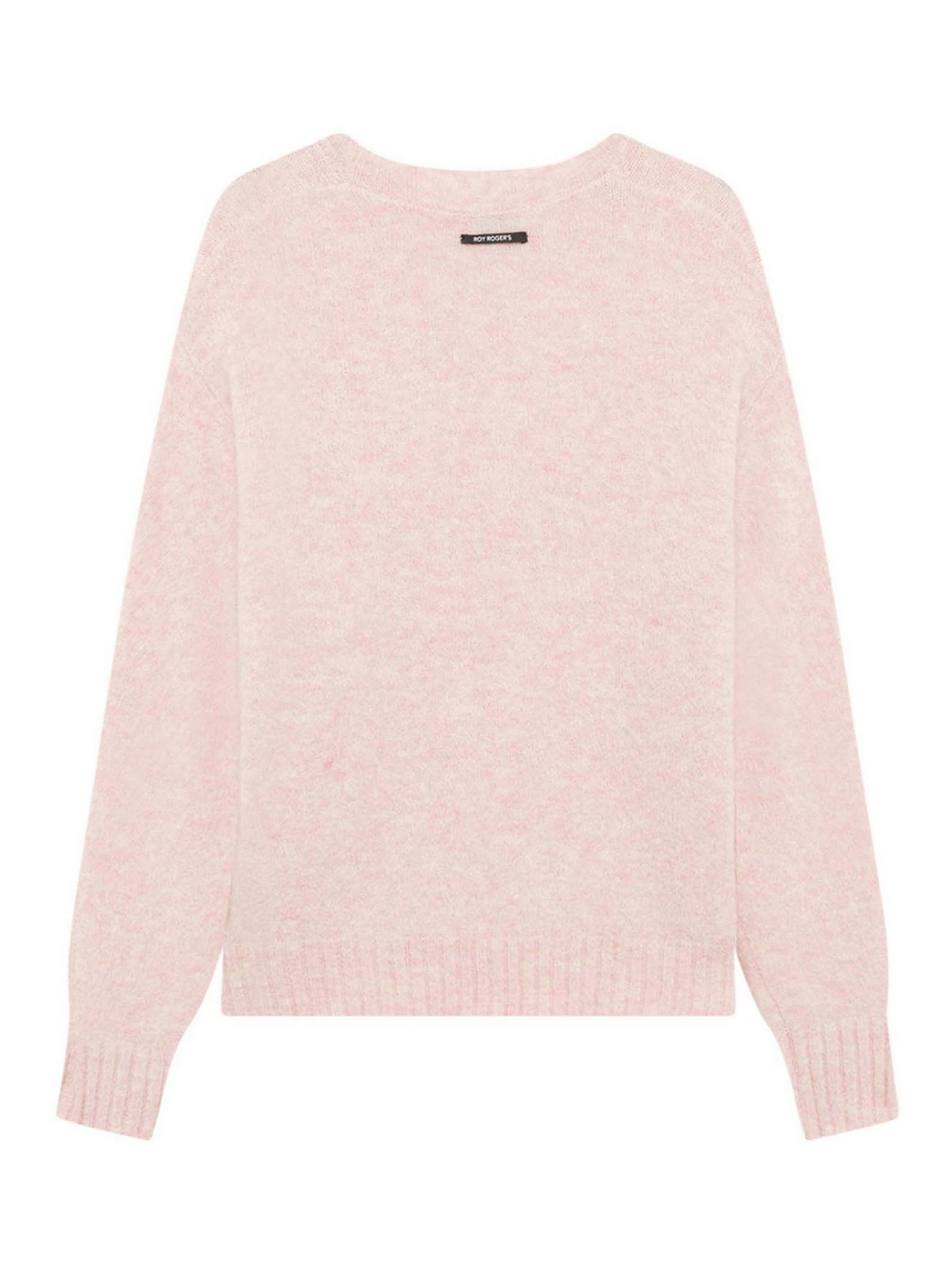 Roy rogers pullover in alpaca brushed tinta unita maglia girocollo firmata roy rogers realizzata in pregiato filato misto alpaca brushed tinta unita, caratterizzata da una texture morbida e calda al tatto. il modello presenta maniche lunghe e bordi rifiniti a costine su collo, polsini e fondo, per una vestibilita' regolare e confortevole. il dettaglio del label roy rogers applicato sul retro firma il capo con linconfondibile identit del brand. un pullover essenziale e sofisticato, ideale per uno stile casual elegante.