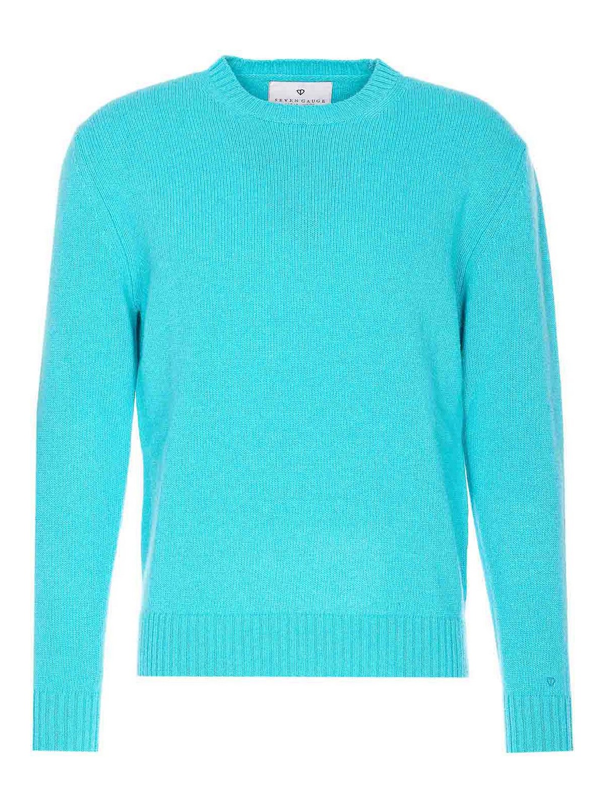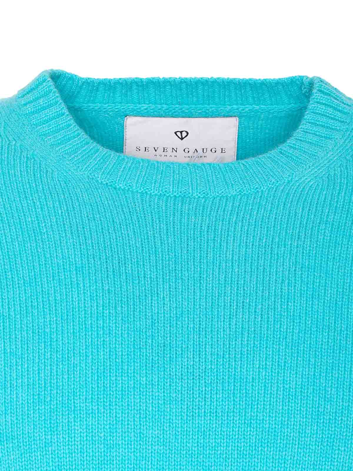 Maglia finezza sette di colore azzurro, girocollo, maniche lunghe
