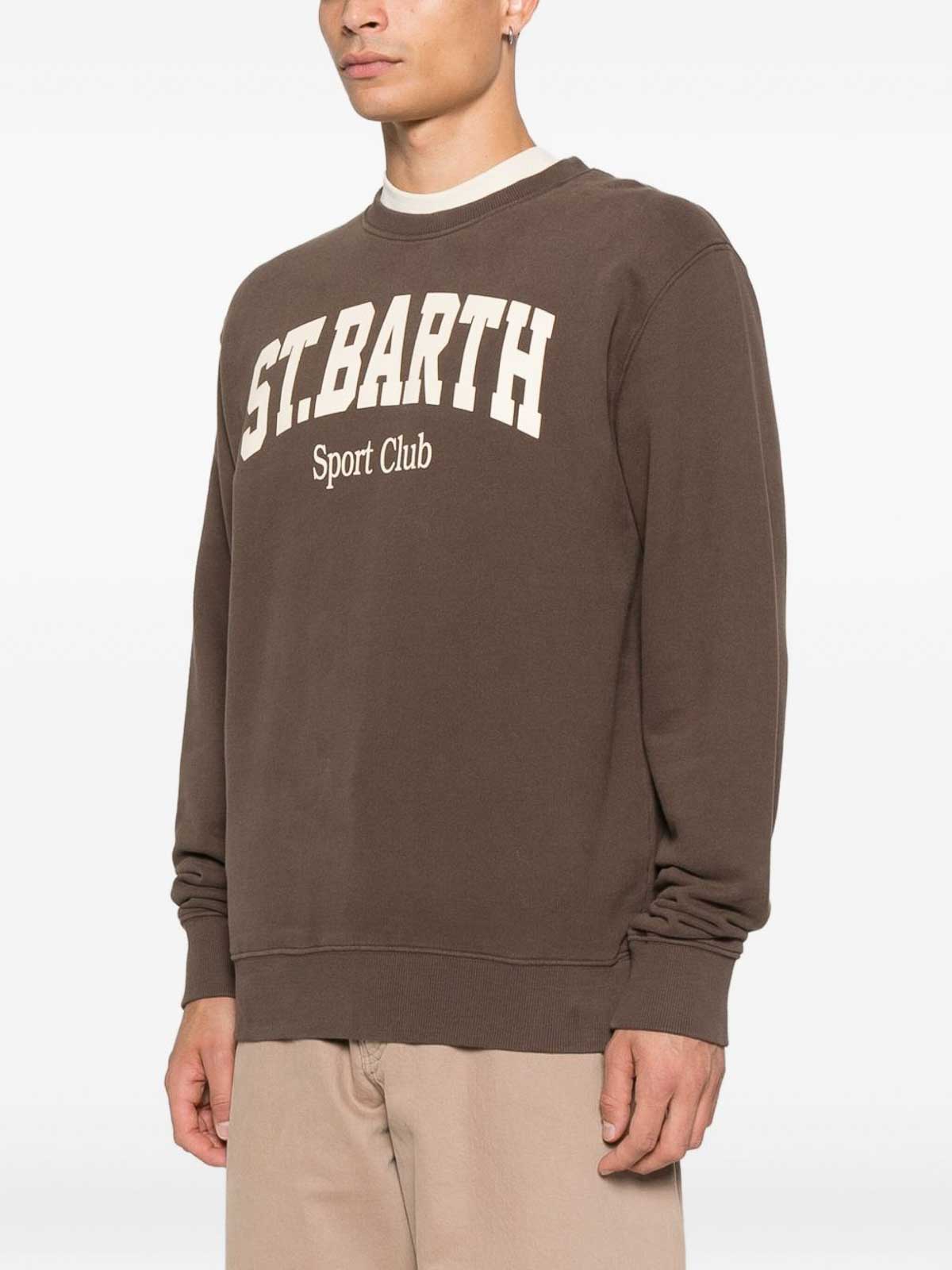 Maglia marrone mc2 saint barth con stampa grafica sul davanti caratterizzata da collo tondo, maniche lunghe e finiture a costine