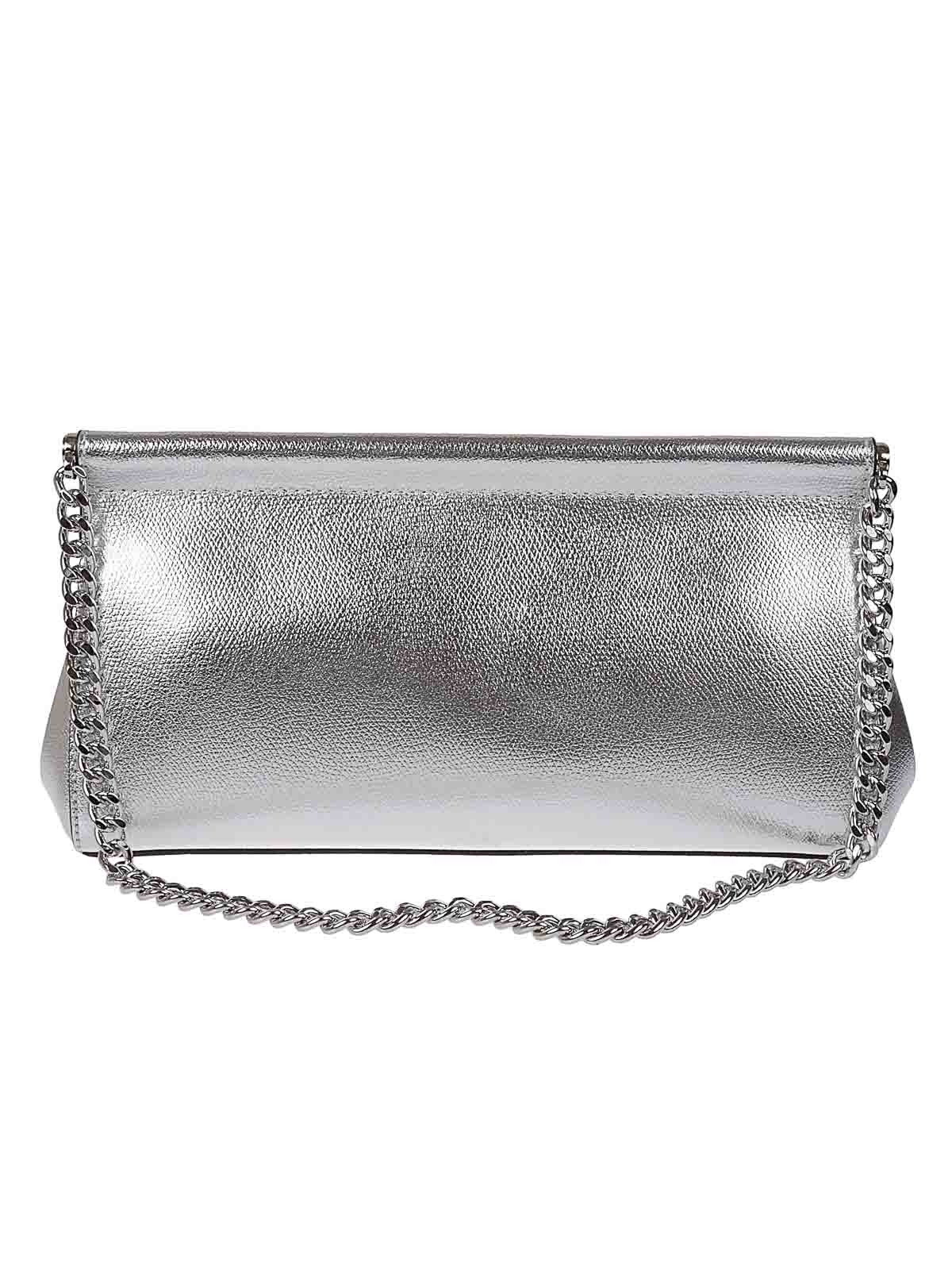 Borsa in pelle martellata e metallizzata patta e bottone magnetico a catena una tasca interna custodia con logo