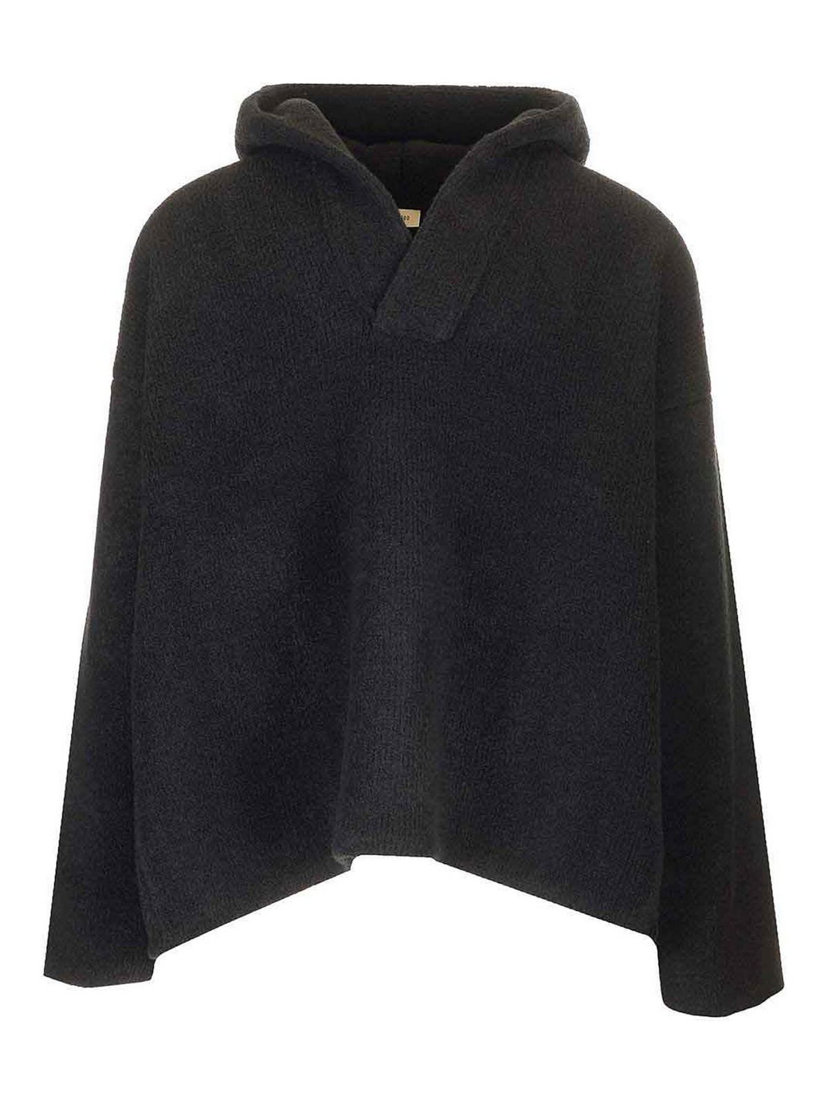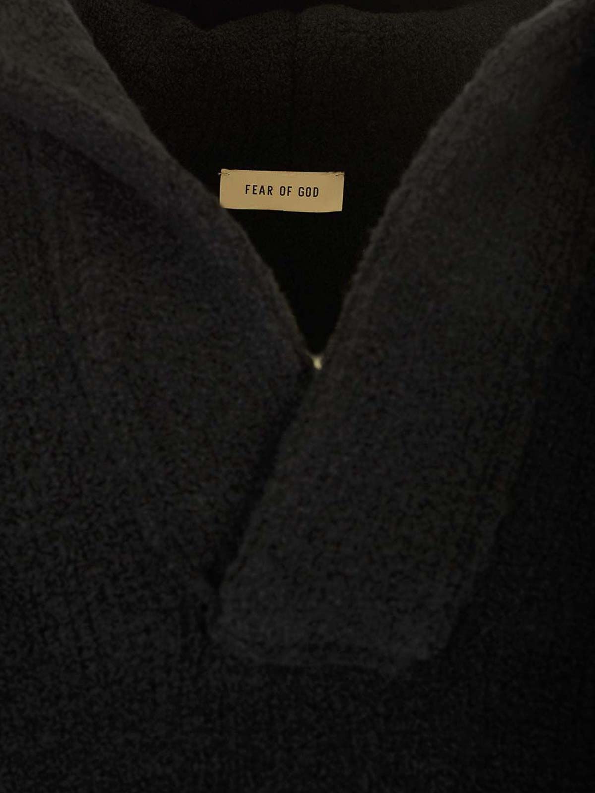 Polo felpa con cappuccio dalla paura di Dio nella lana merino nera con una trama da boucle