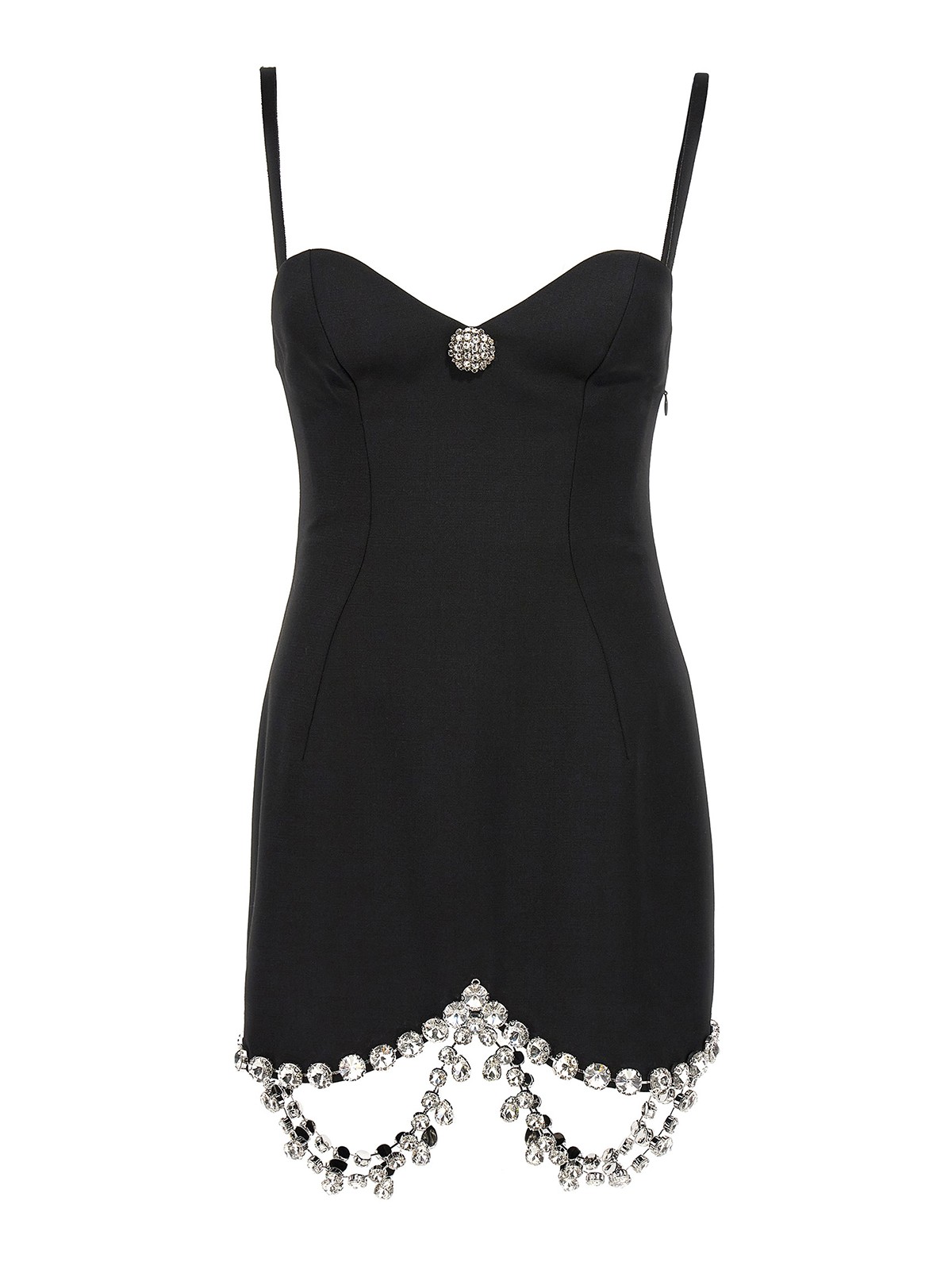 Mini abito in lana drappeggiato con cristalli con scollo a cuore con applicazioni di cristalli spalline sottili regolabili cristalli sull'orlo e chiusura laterale con zip