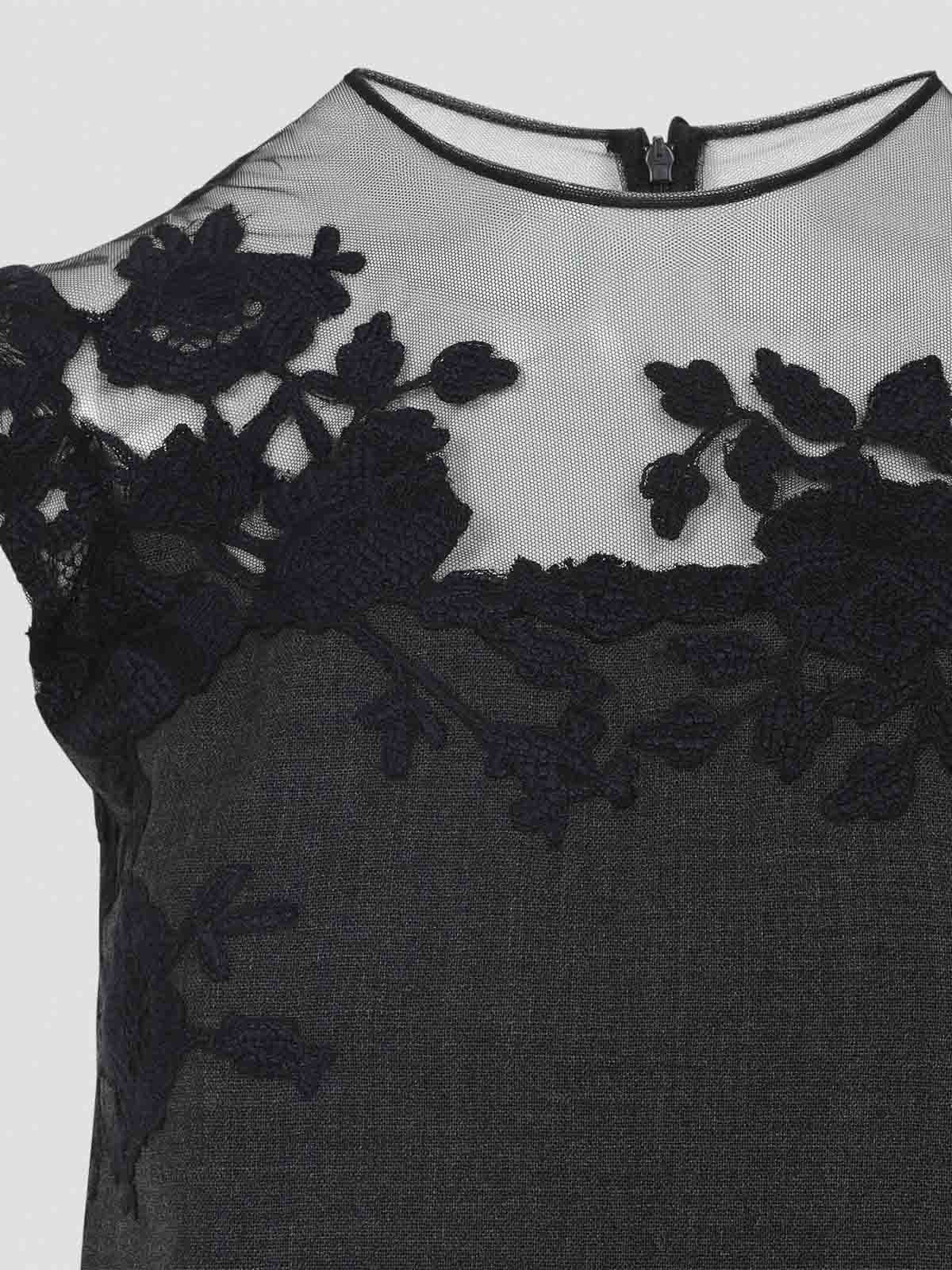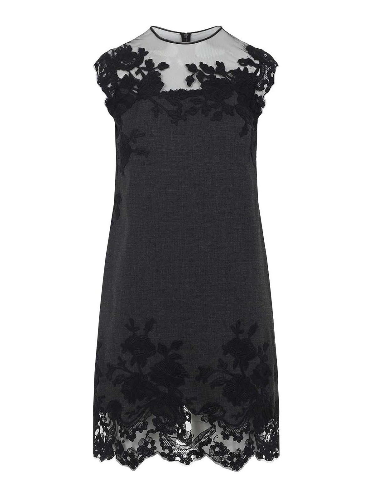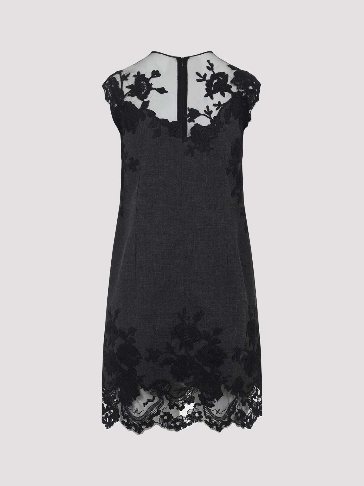 Mini Vestito Ermanno Scervino Grey Craubati con mesh top grigio mlange adornata con pizzo nero scollo rotondo a maniche corte posteriori con rivestimento in pizzo zip nascosto e orlo smerlato