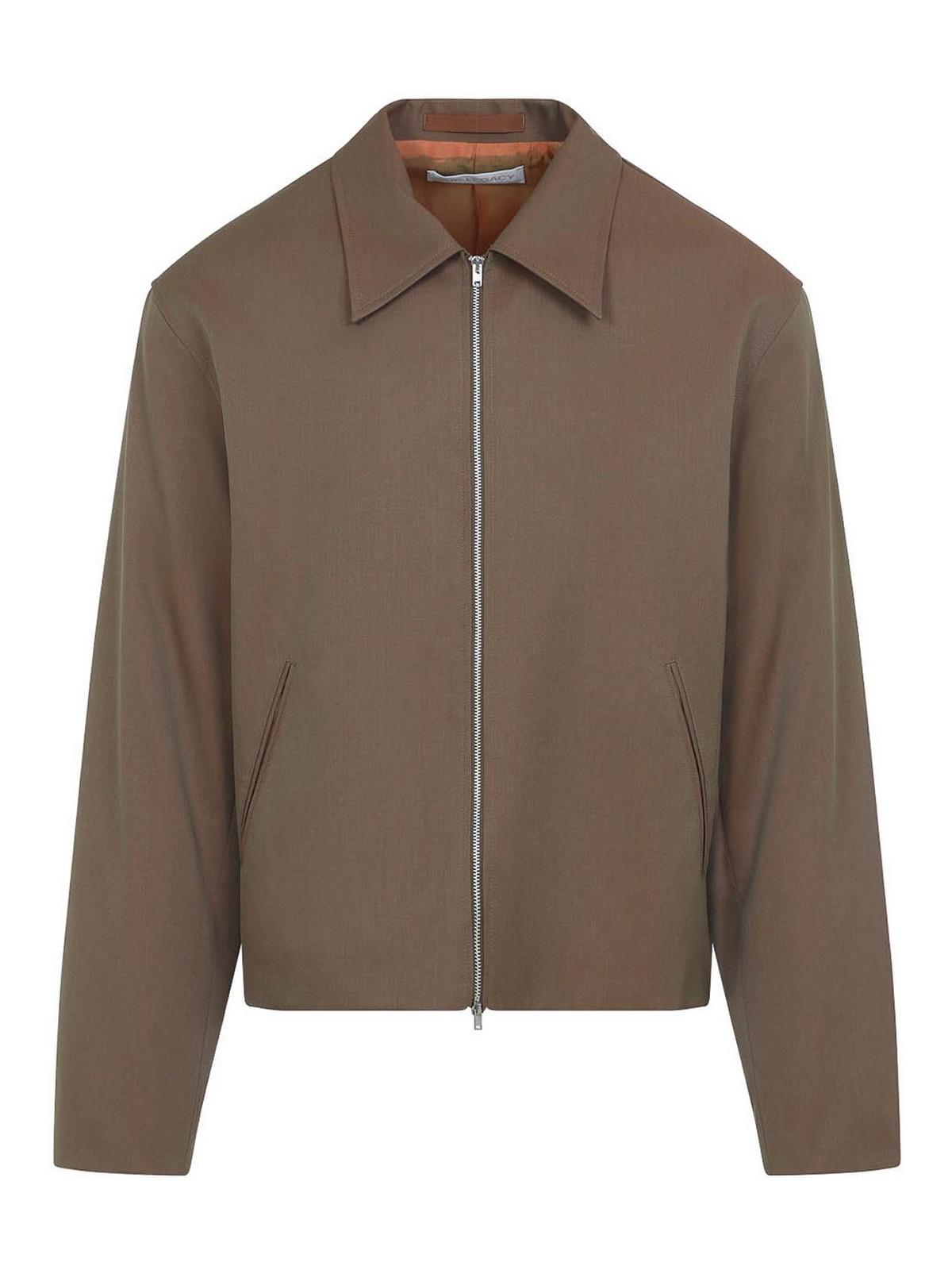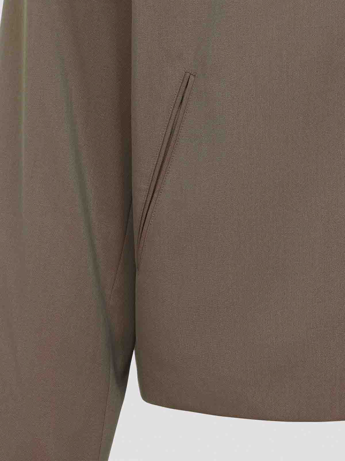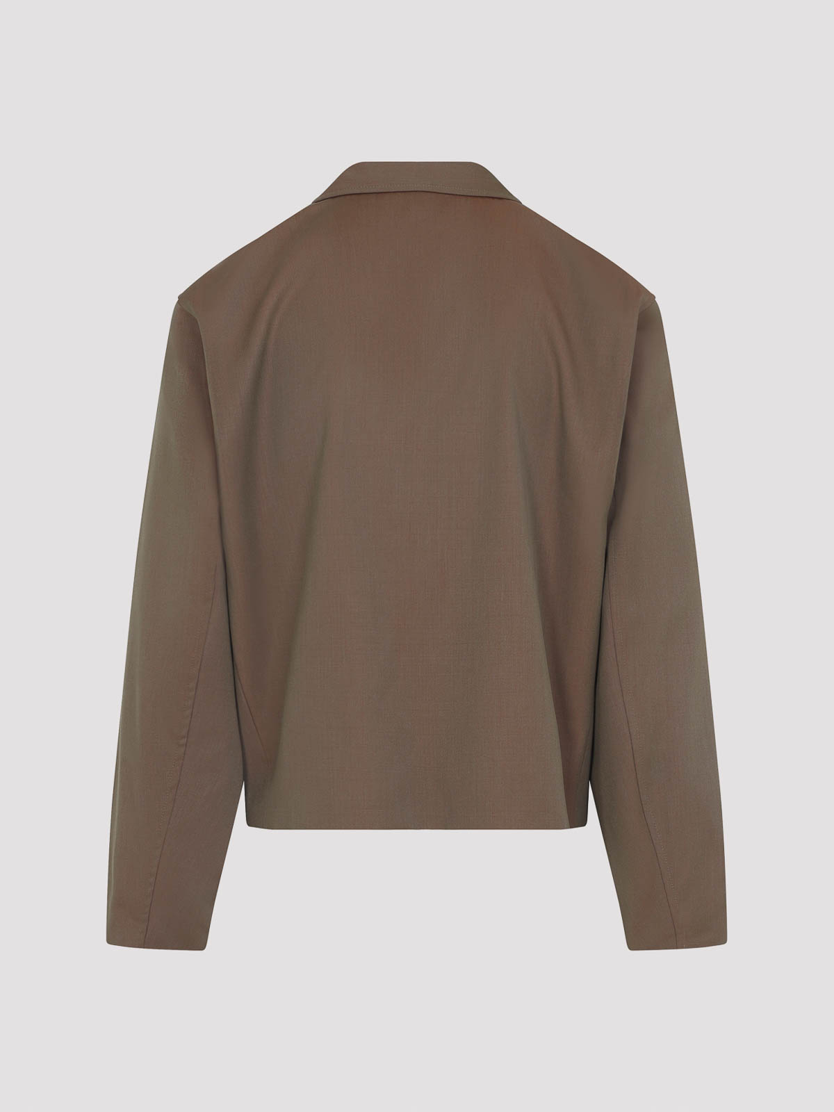 La nostra classica mini giacca in lana vergine marrone bronzo. Giacca in lana vergine marrone bronzo, collo a punta, chiusura frontale con zip, tasche laterali a fessura, maniche lunghe, fondo dritto, interamente foderata.