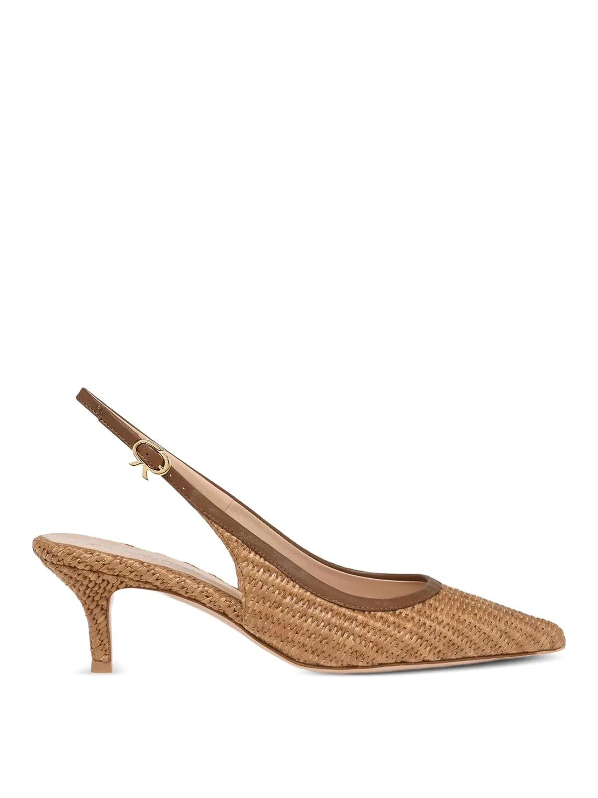 Slingback in rafia, fondo cuoio, tacco cm 5, taglia italia