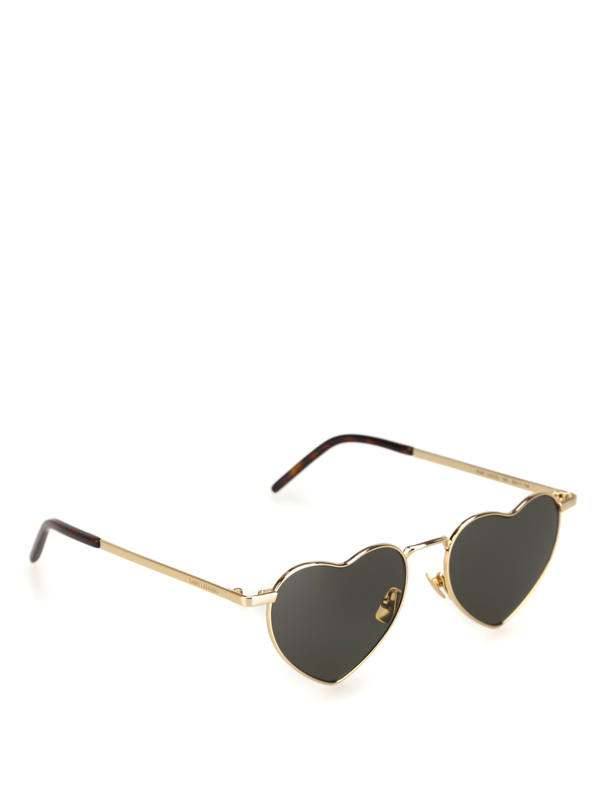 Occhiali da sole a forma di cuore in metallo dorato con lenti grigie Cat.3.