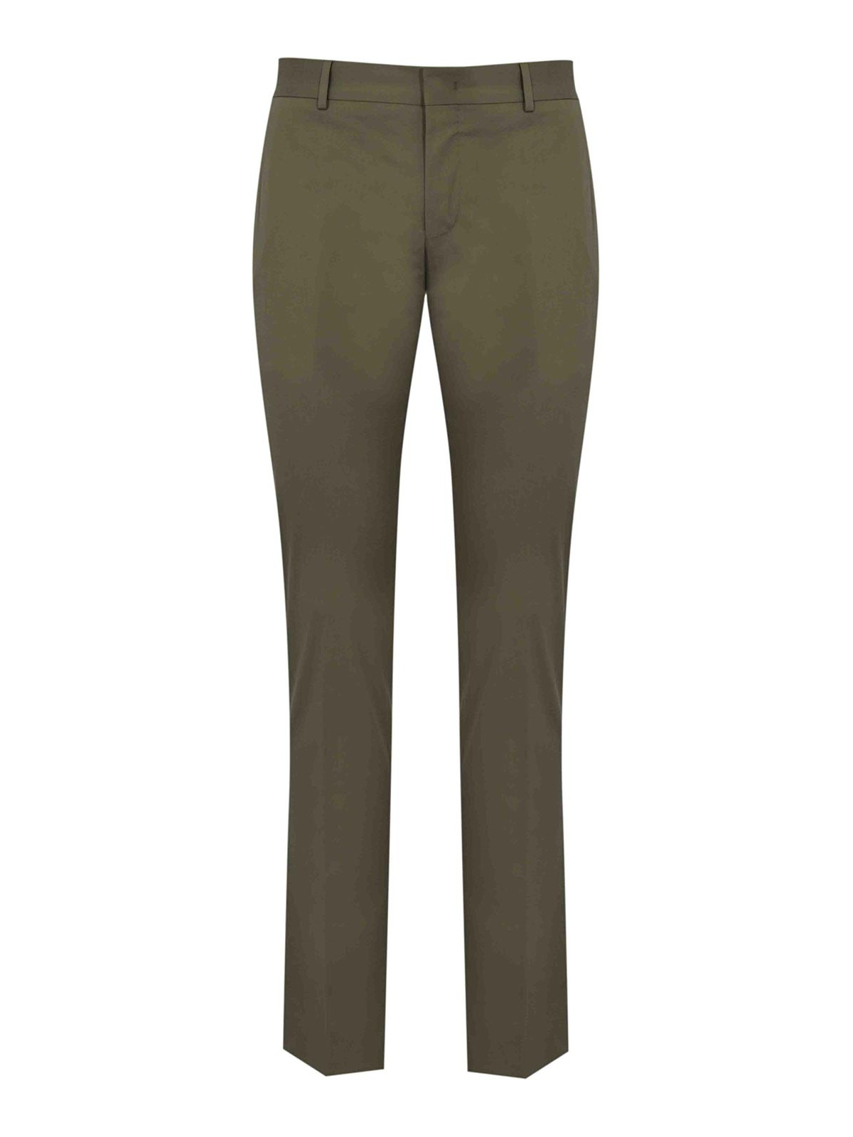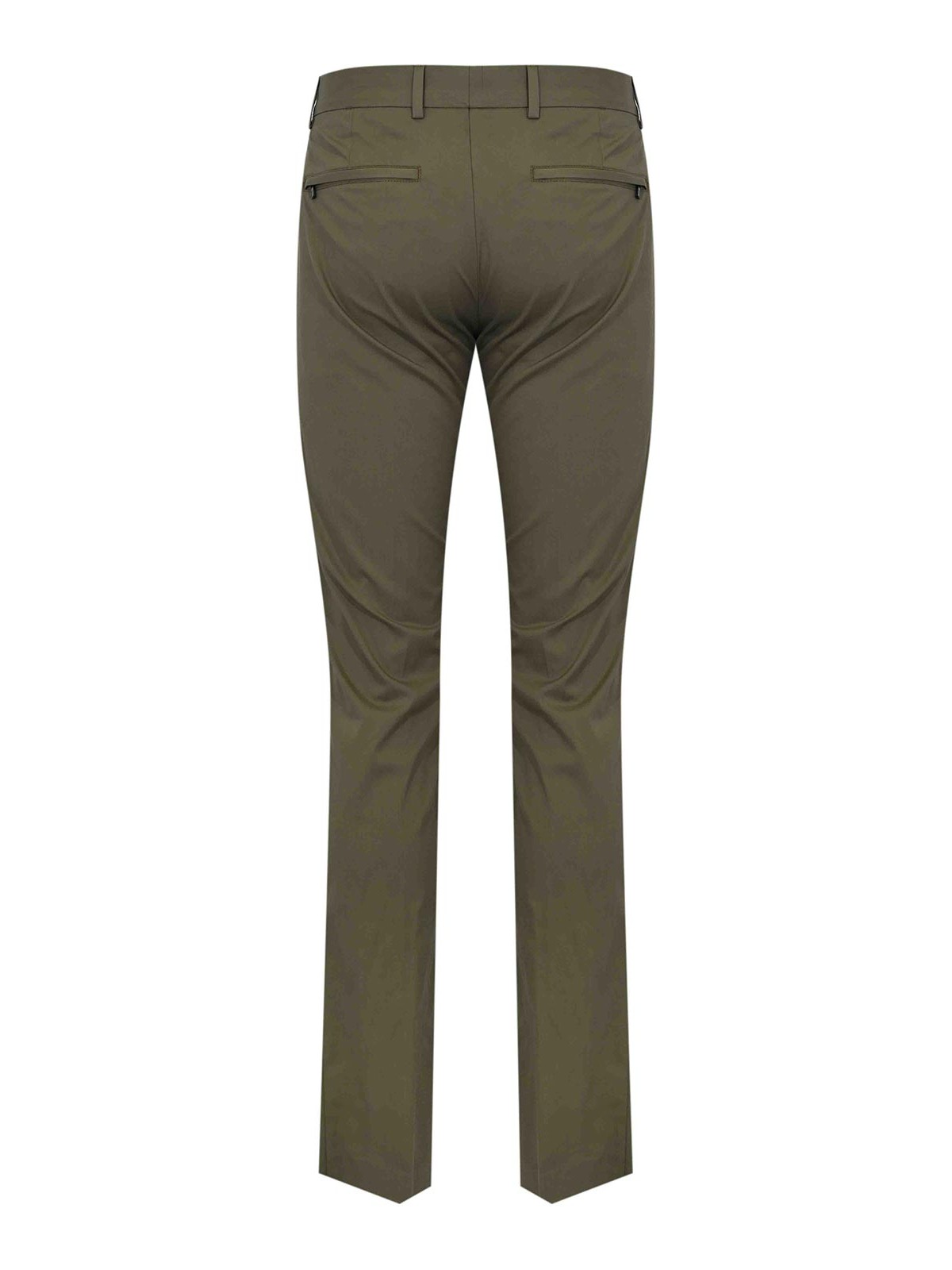 Pantalone da uomo in jersey, jersey di misto cotone stretch, vita regolare, passanti per cintura, chiusura con zip e gancio, tasche laterali, tasche sul retro a filetto con bottone, vestibilitàa' regolare, colore: militare