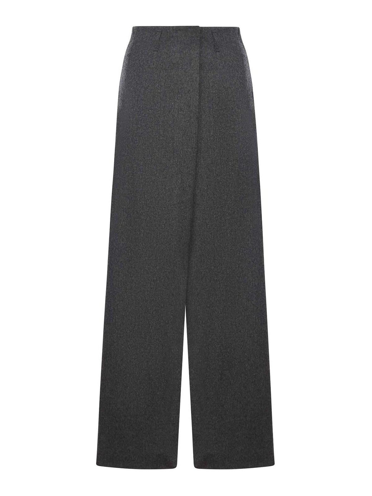 Gamba ampia, bottone asimmetrico, passanti per cintura, fondo dritto, - colore grigio