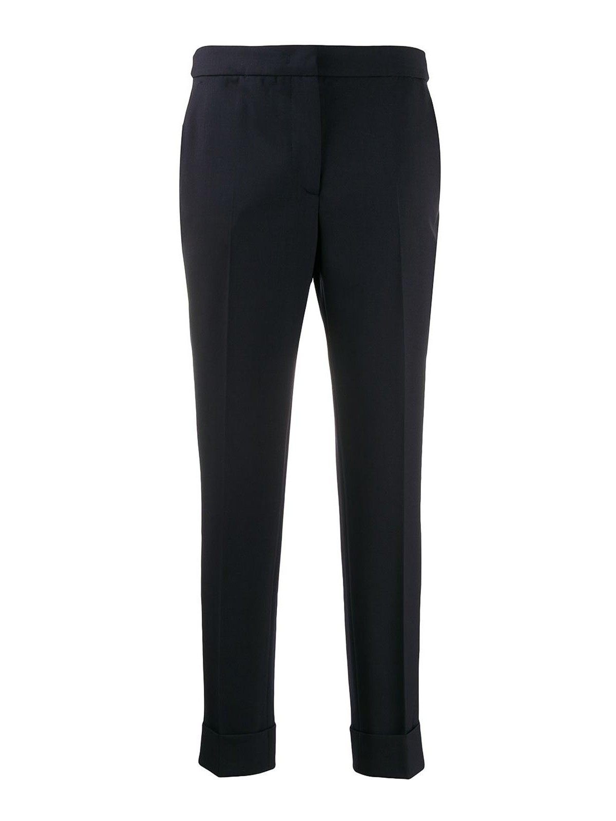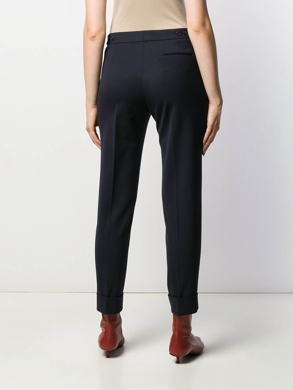 Pantaloni crop di pt01. modello con vita alta, chiusura con gancio e zip, tasche laterali a soffietto, tasca posteriore e risvolti. composizione poliestere 54%, lana 44%, spandex/elastam 2%