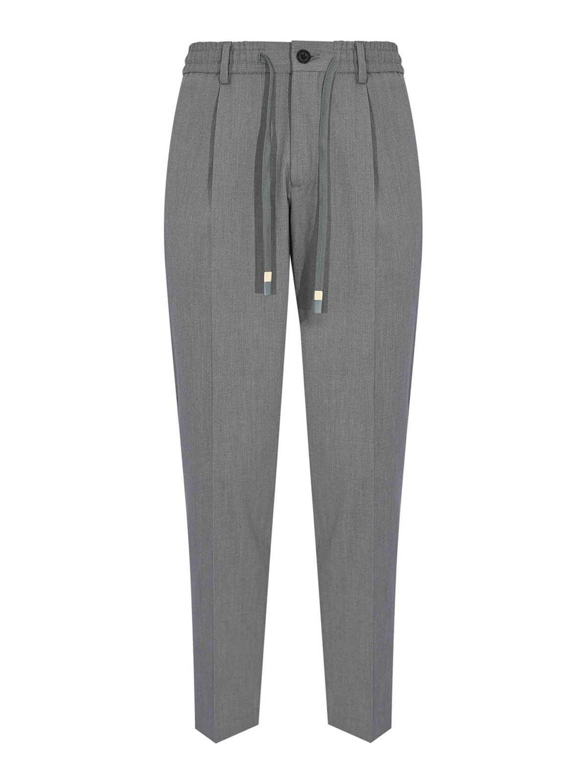 pantalone con coulisse in misto lana e viscosa tecnica daniele alessandrini tessuto: misto lana e viscosa tecnica fantasia: marrone tinta unita vita: vita media con elastico in vita e coulisse regolabile, dotato di passanti chiusura: bottone frontale, zip e coulisse tasche: tasche oblique laterali e tasche posteriori a filetto lunghezza: lungo dettagli: pinces davanti, piega stirata, coulisse in colore a contrasto, design moderno con comfort sportivo e costruzione sartoriale foderato: no vestibilità: vestibilità regolare