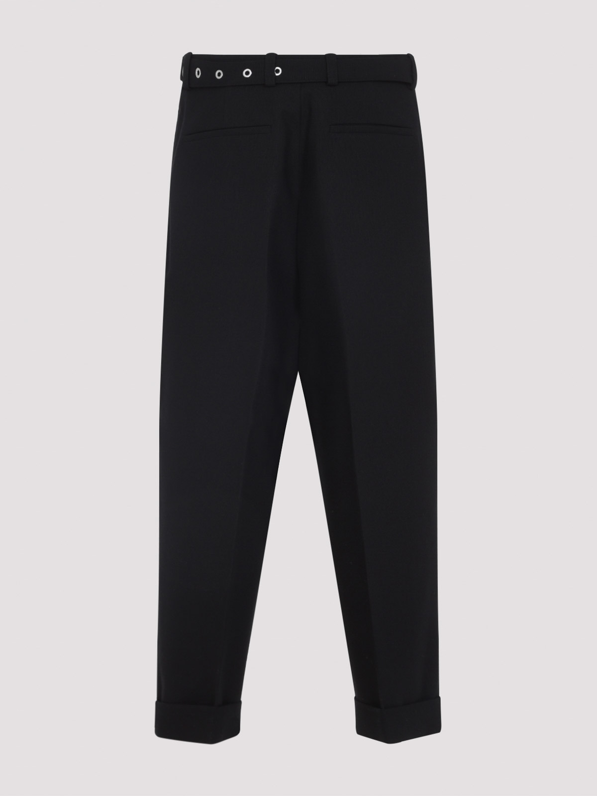 Pantaloni neri Jil Sander Craft in Black Regular Regulari a bassa cintura a bassa cintura a basso contenuto di cinghia tonale staccabile gancio nascosto e tasche laterali allentate con zip Central Central