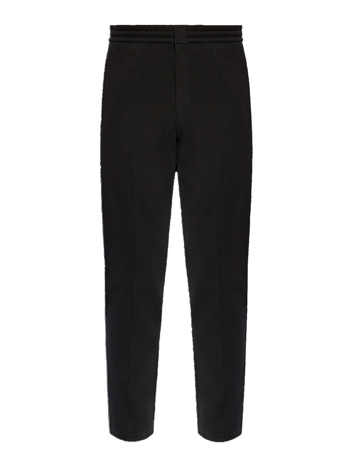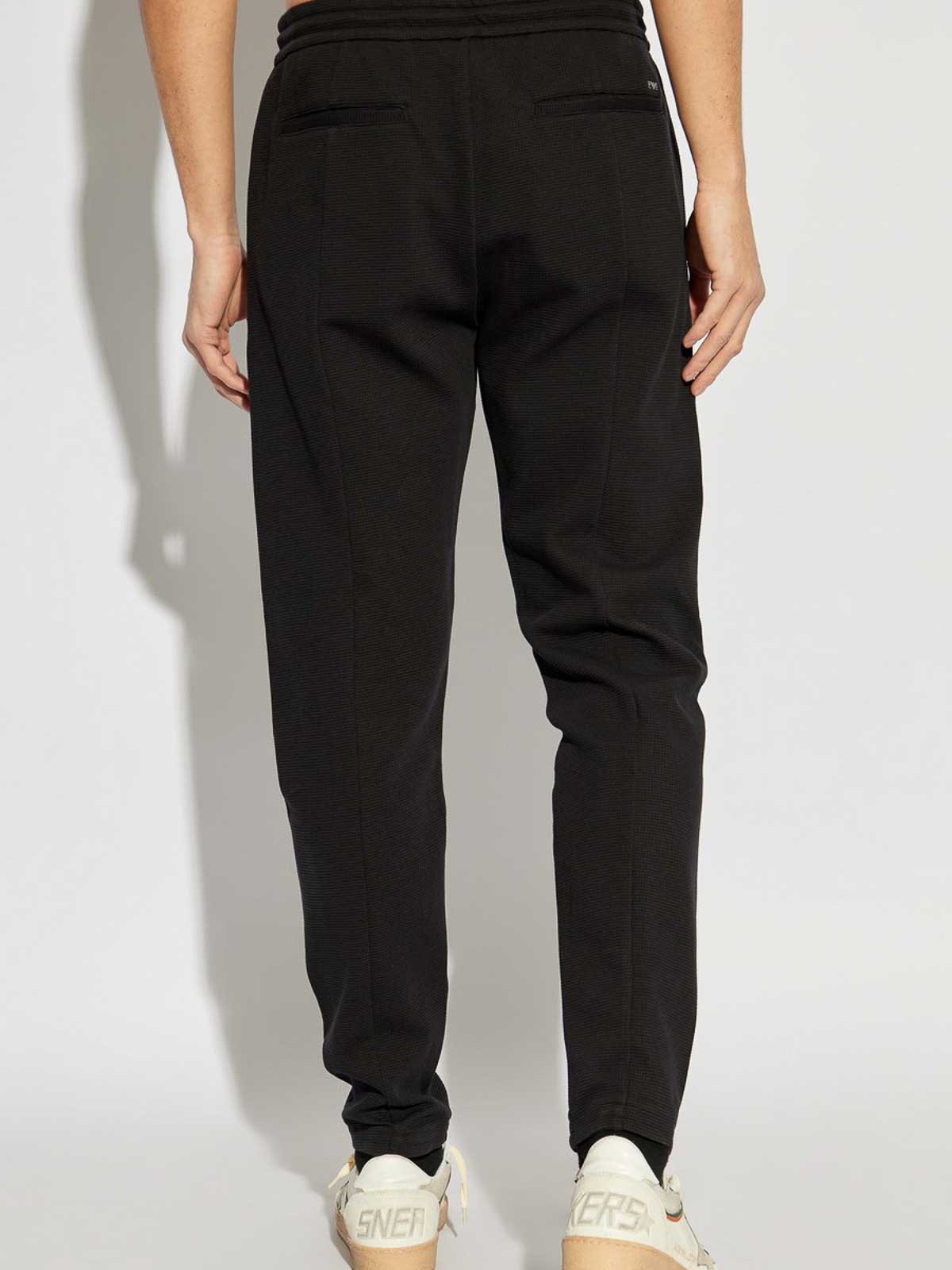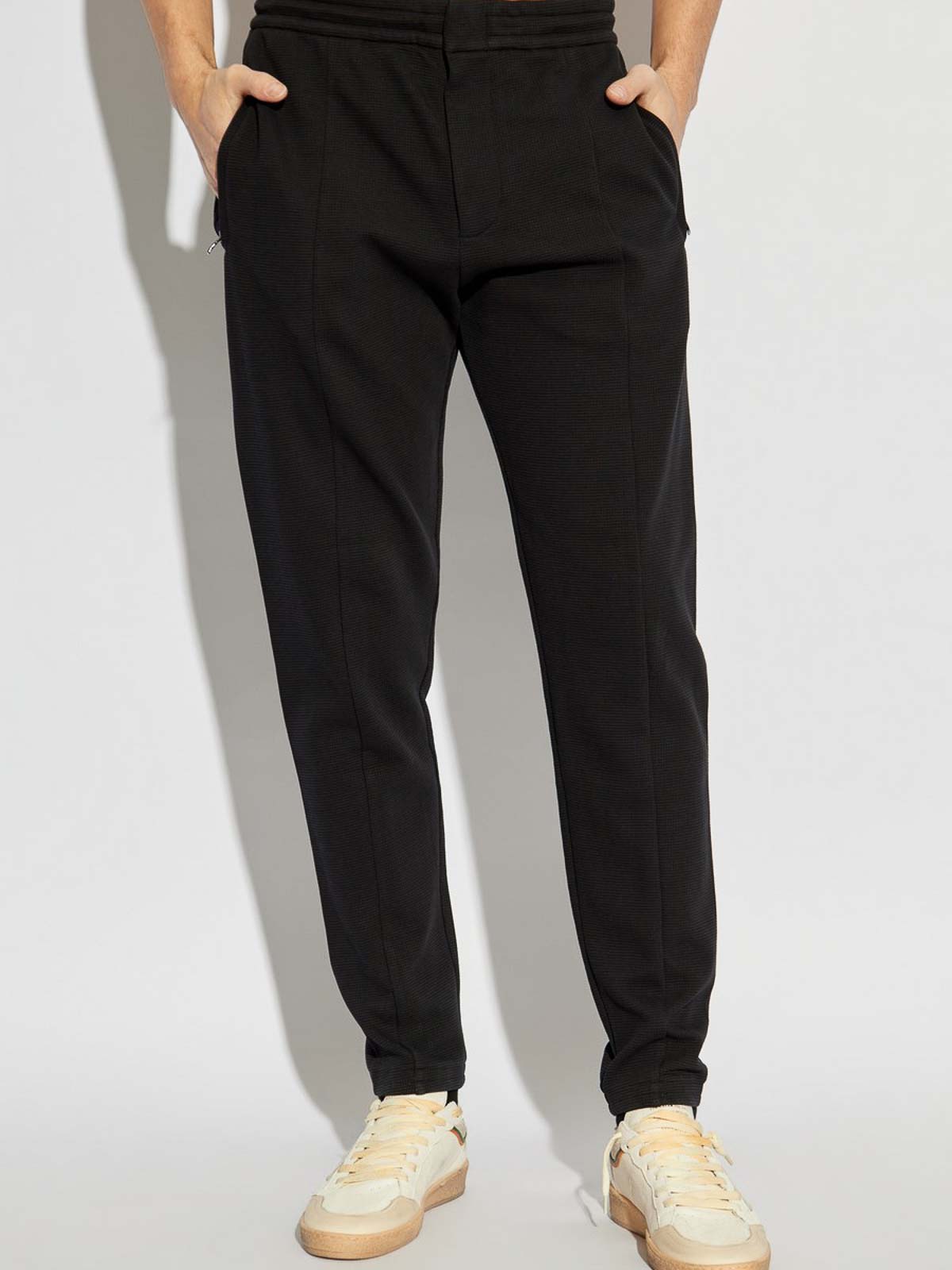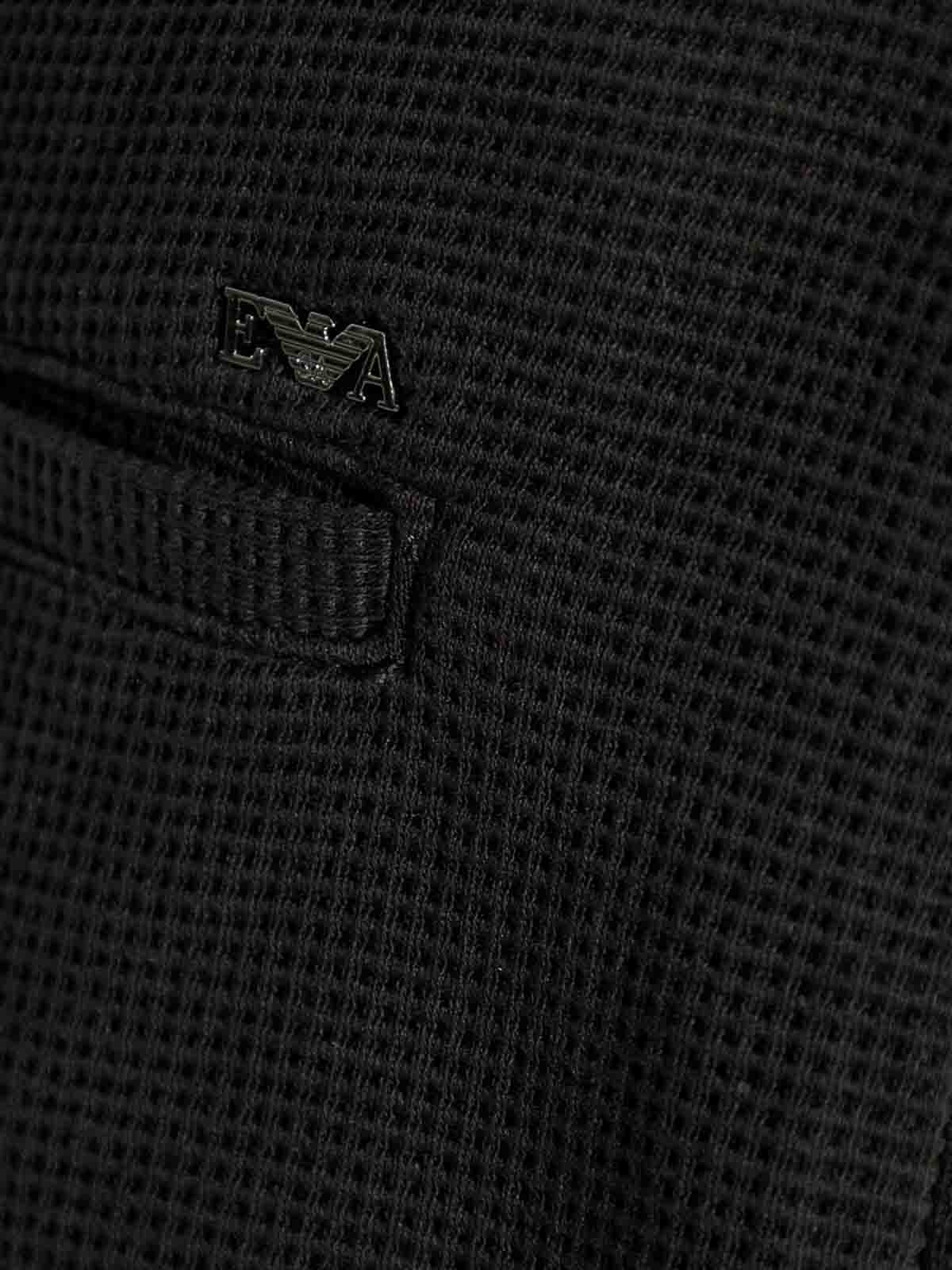Pantaloni Emporio Armani in Jersey con una trama dell'effetto di waffle con una vita coulcata interna con tasche con zip laterali e tasche a marcia posteriore con logo sopra il taschino destro.