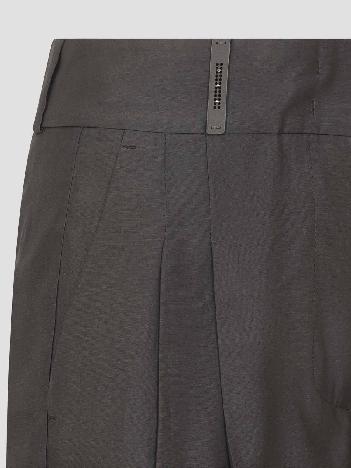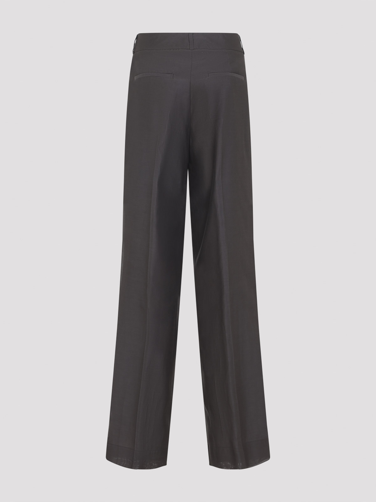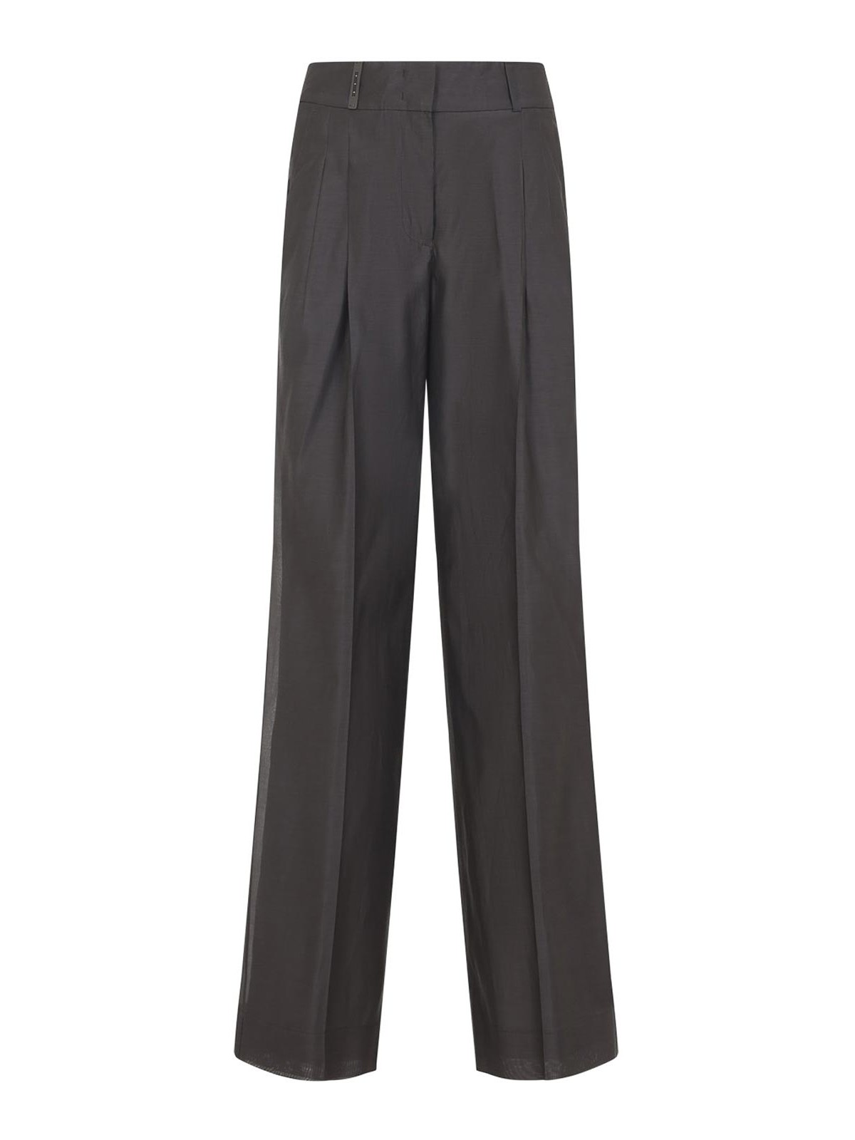 Pantaloni Peserico in cotone e seta grigio. pantaloni a vita alta realizzati in taffetà di cotone e seta grigio. Presentano passanti per cintura, chiusura frontale nascosta, doppie pinces sul davanti, tasche alla francese, due tasche a filetto sul retro e gamba dritta.