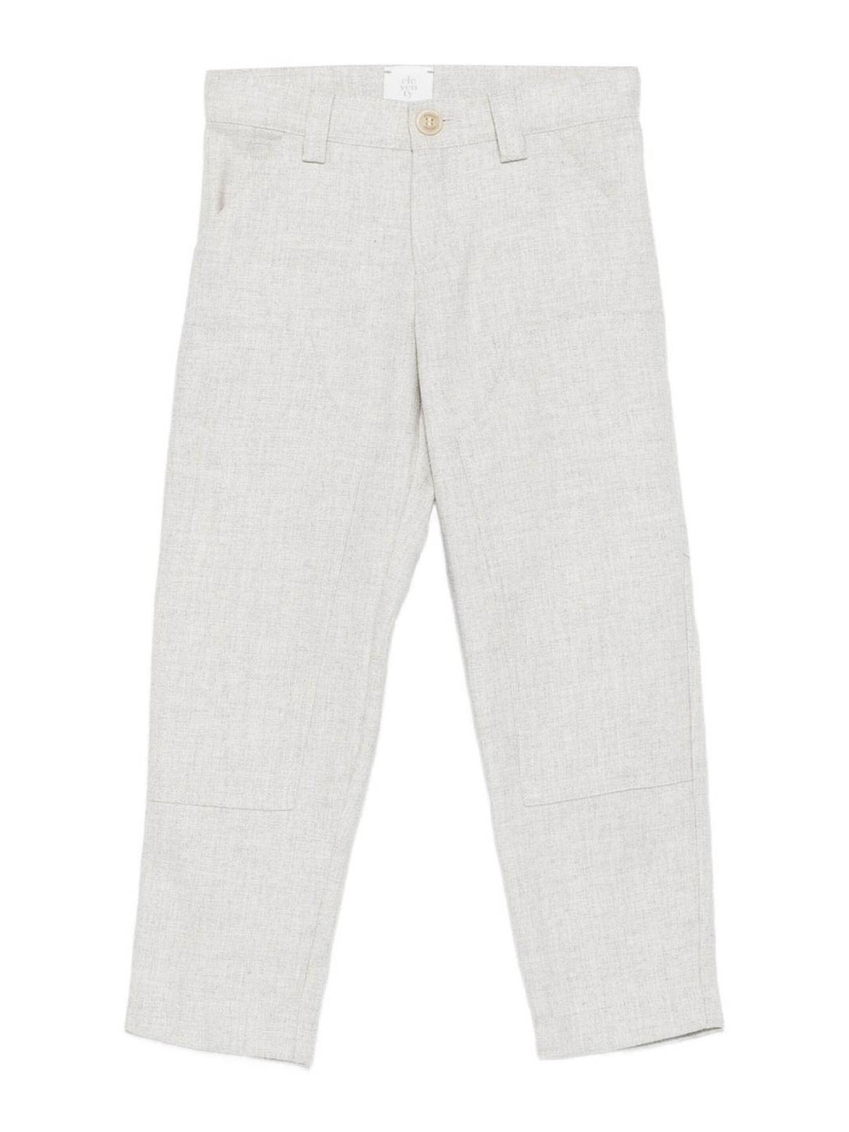 Pantaloni in lana caratteristiche grigio a bottoni tasche posteriori applicate