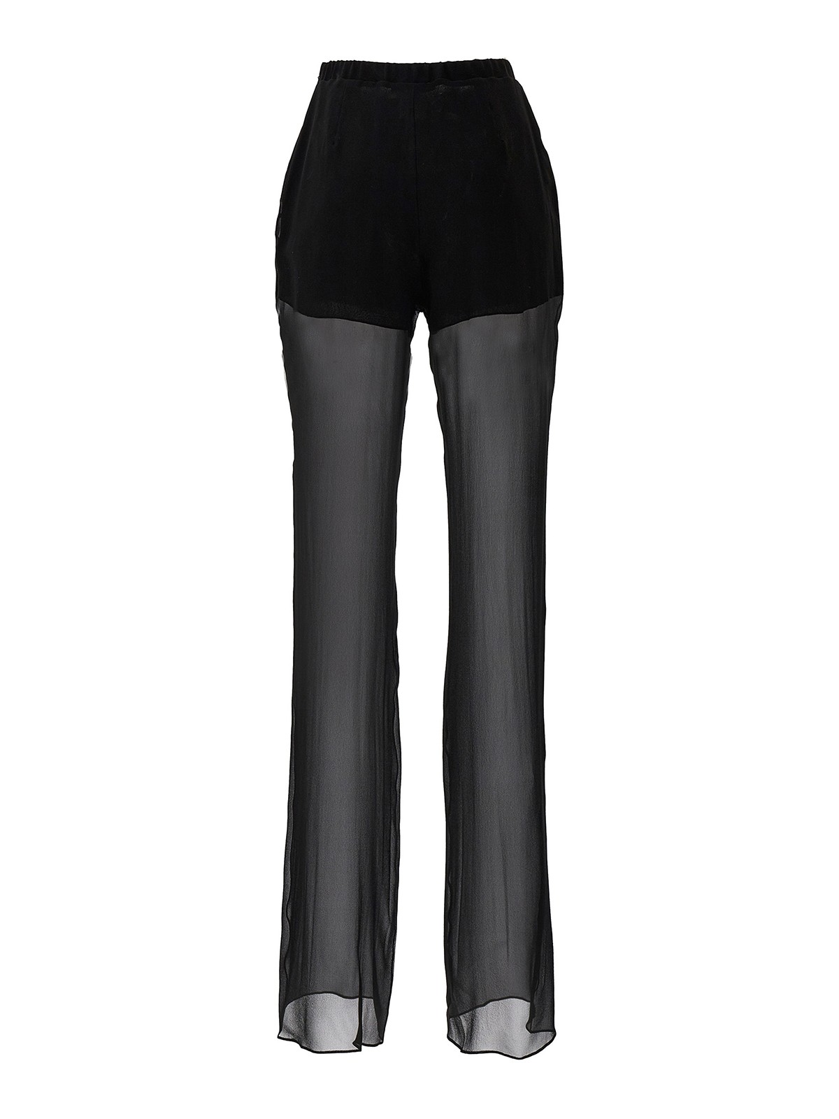 Pantaloni in seta trasparente con elastico in vita e chiusura laterale con cerniera