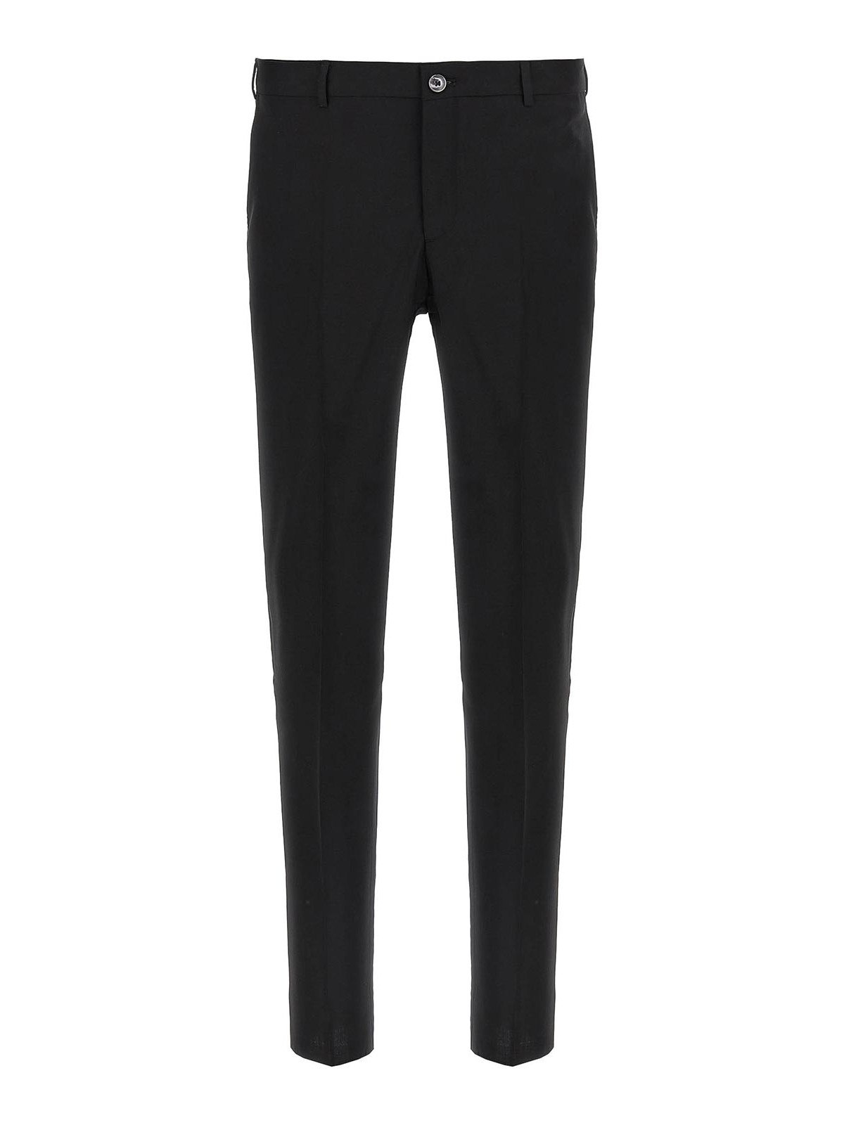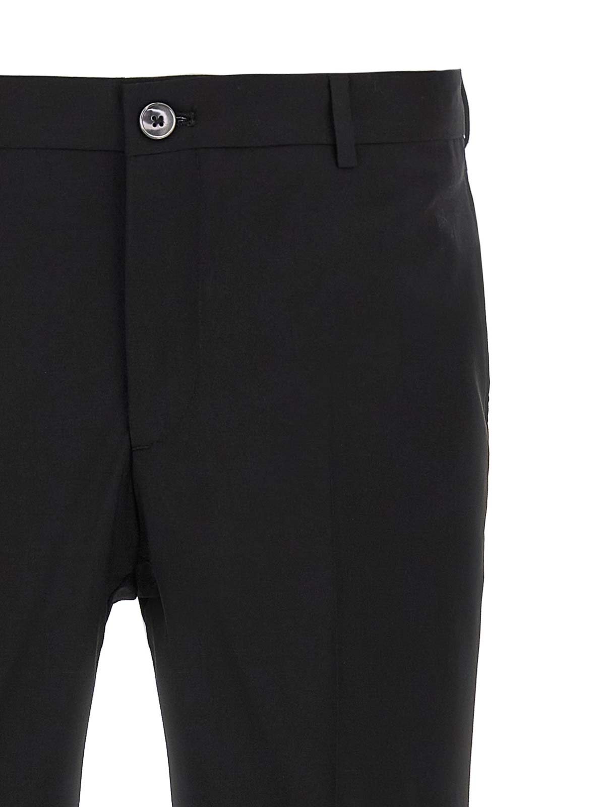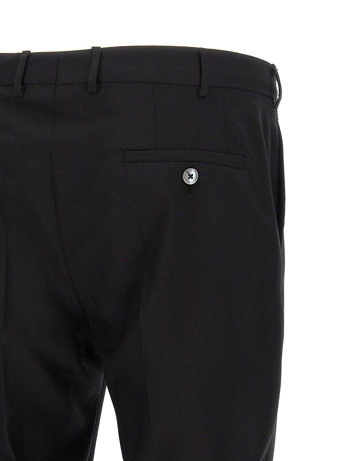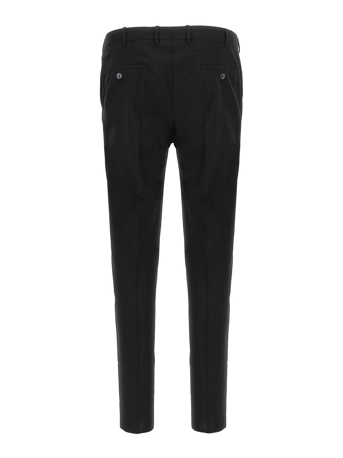 Pantaloni in lana 'linea cerimonia', piega stirata, tasche davanti all'americana, tasche posteriori a filetto, chiusura frontale con zip e bottone, fodera in viscosa.