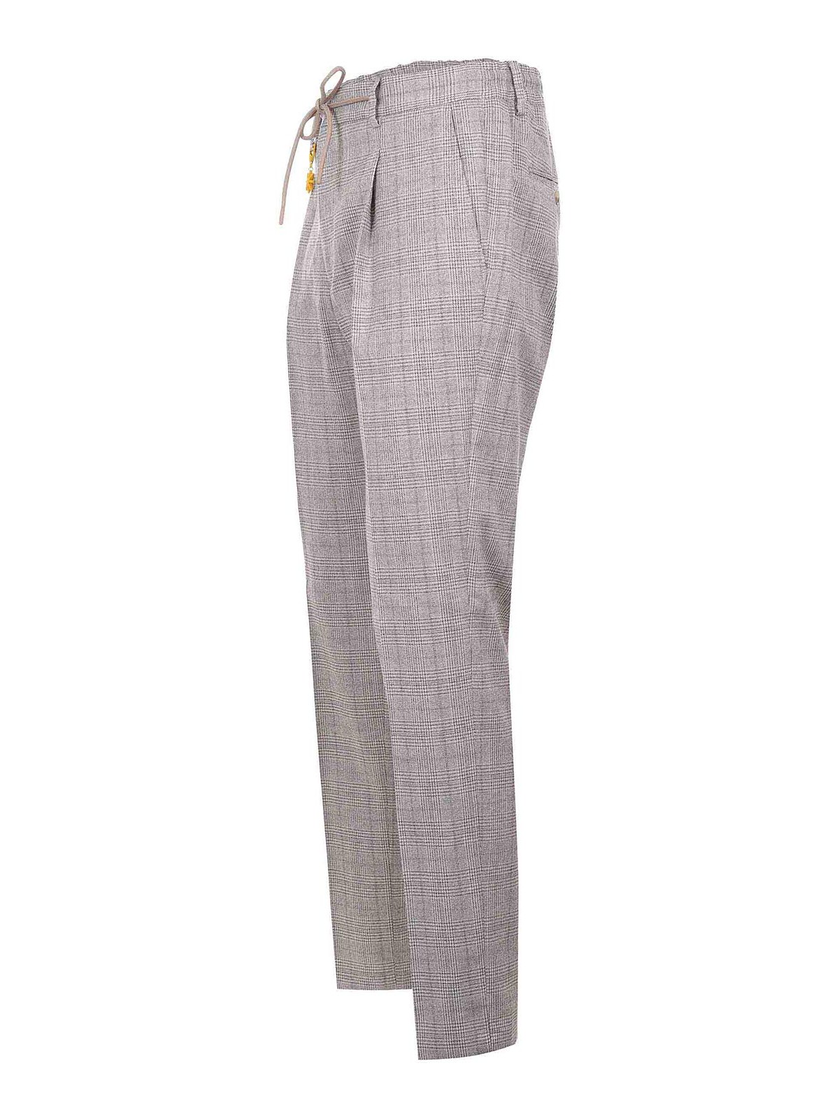 Pantaloni di Manuel Ritz in Beige Prince of Wales Allunga la vita elasticizzata con pieghe con le pieghe con le tasche zip e tasche America abbottonate sul retro sul retro