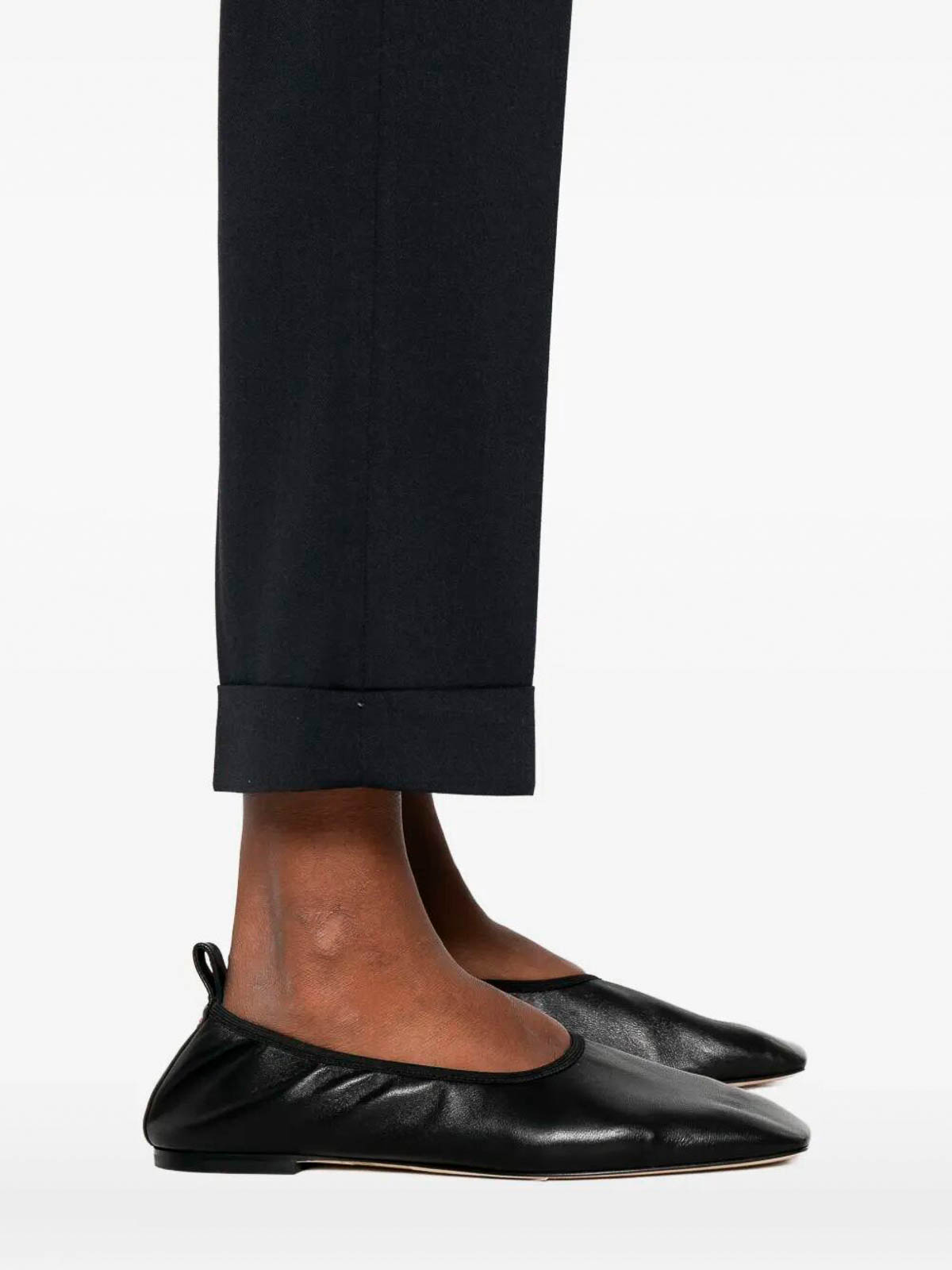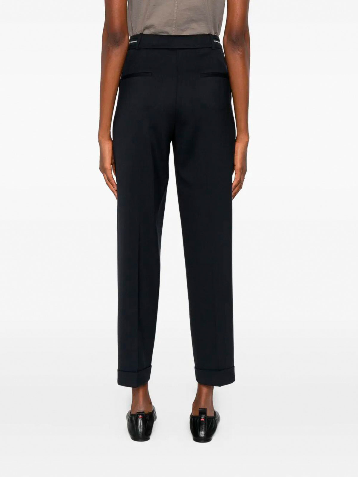 Blu navy, lana, orlo risvoltabile, passanti per cintura, tasche laterali nelle cuciture