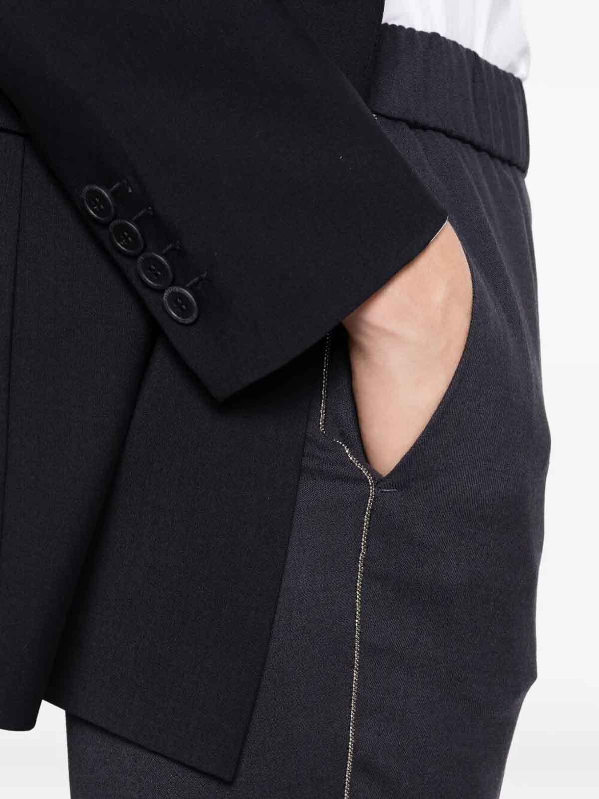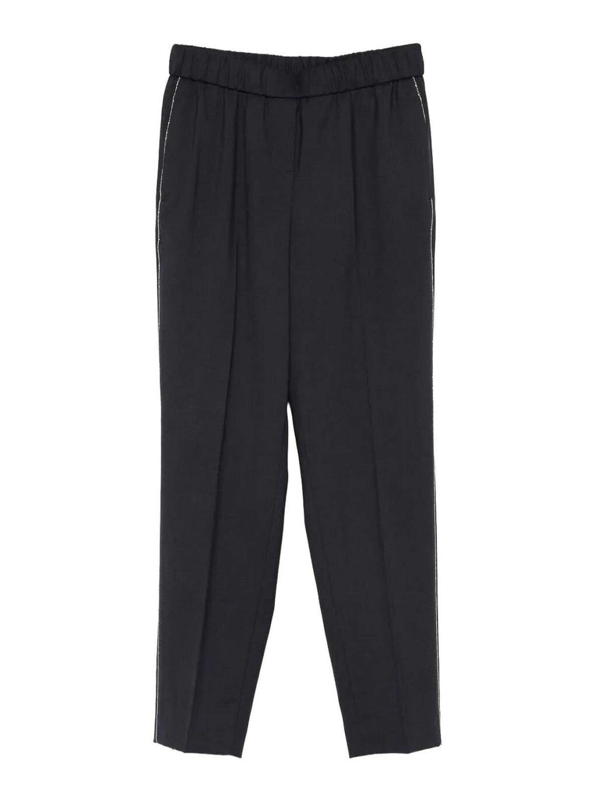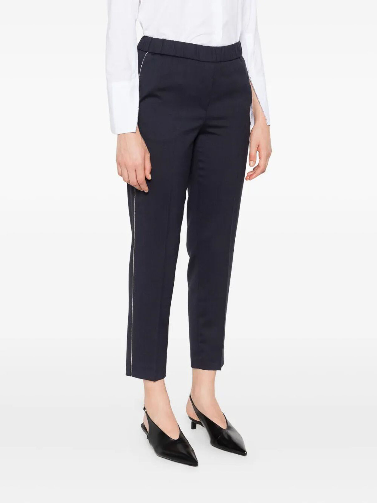 Blu, vita elasticizzata, dettaglio a striscia laterale, gamba dritta, vita media, misto lana