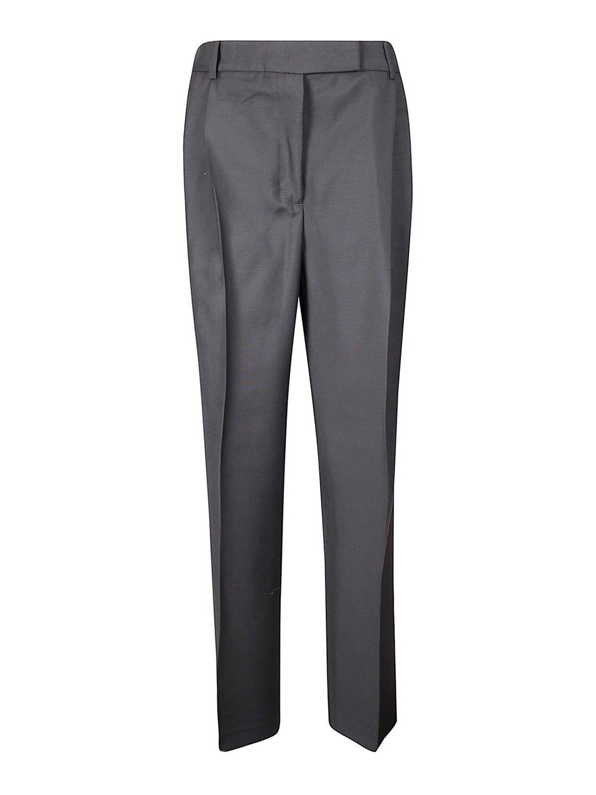 Pantaloni in lana vergine e mohair, taglio sartoriale, vita media, gamba dritta.