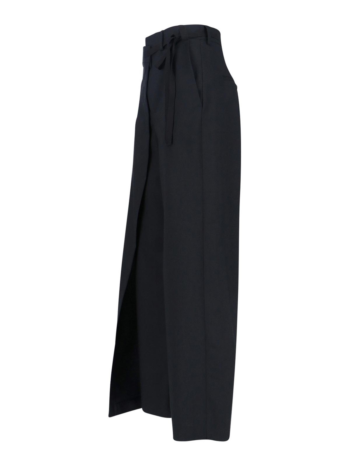 Pantaloni sartoriali mm6 maison margiela, in tessuto nero, chiusura zip e gancio fronte, passanti cintura, dettaglio allacciatura fronte, una tasca filetto retro, impuntura a contrasto retro, gamba dritta.
