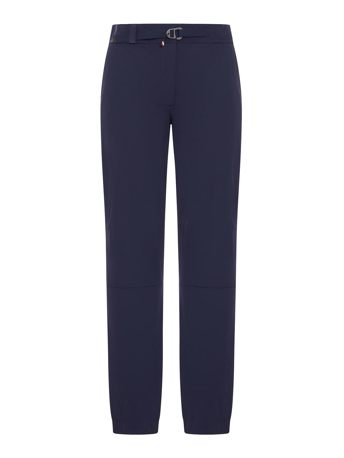 tessuto tecnico elasticizzato ad alte prestazioni, vita con cintura regolabile integrata e fibbia tecnica, chiusura frontale con zip nascosta, vestibilità regolare, gamba dritta, rinforzi e pannellature strategiche, fondo gamba rifinito, applicazione logo sul retro, colore: blu