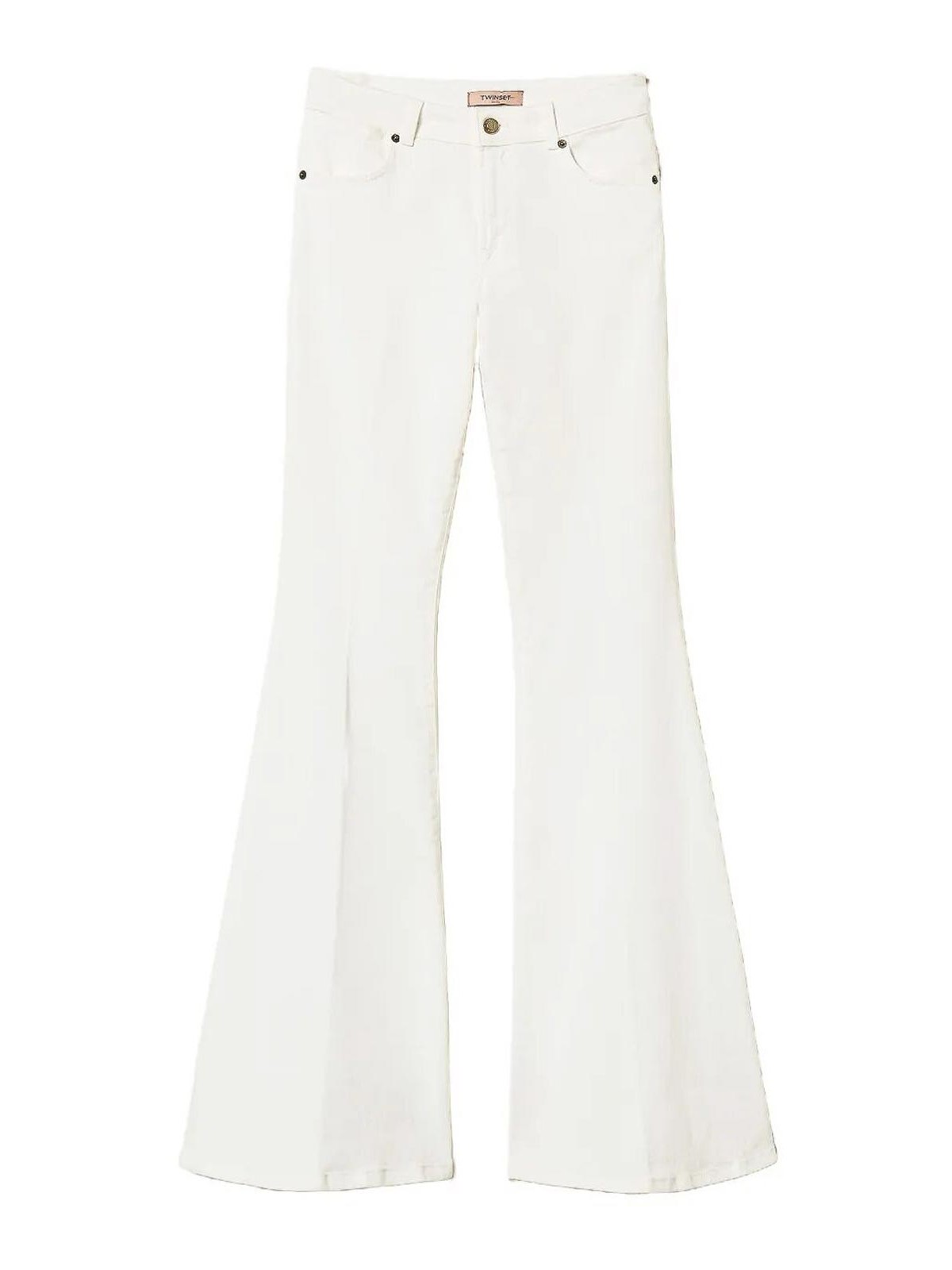 Pantaloni Twinset in tessuto fluido caratterizzati da una linea essenziale e raffinata. Il colore Giglio dona luminosità al capo, rendendolo perfetto per creare outfit femminili e moderni.