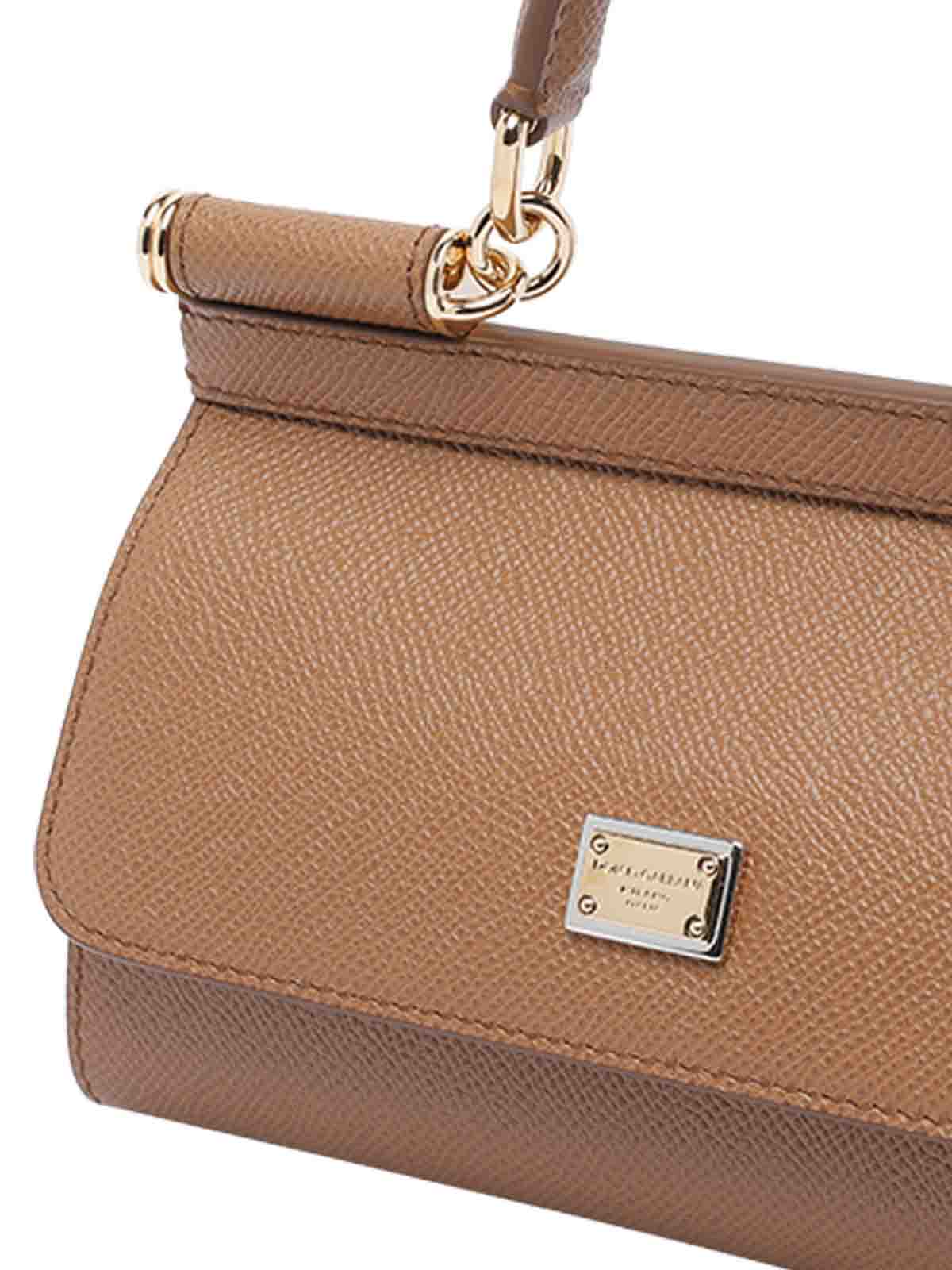 Dolce & Gabbana Caramello Small Sicily Borse, chiusura a chiusura a spinta, tasca aperta interna, 1 manico, cinturino adattabile e rimovibile, logo frontale