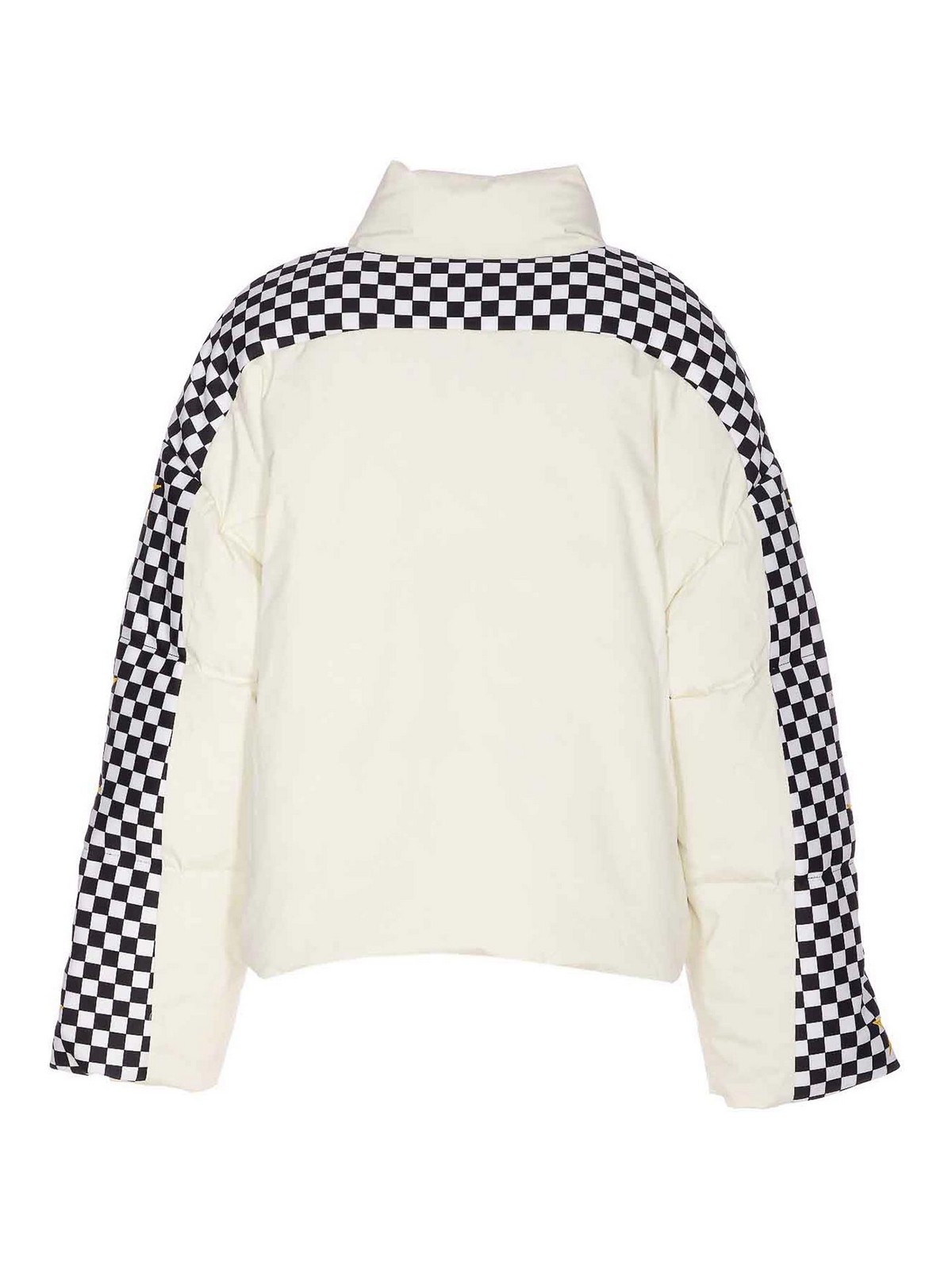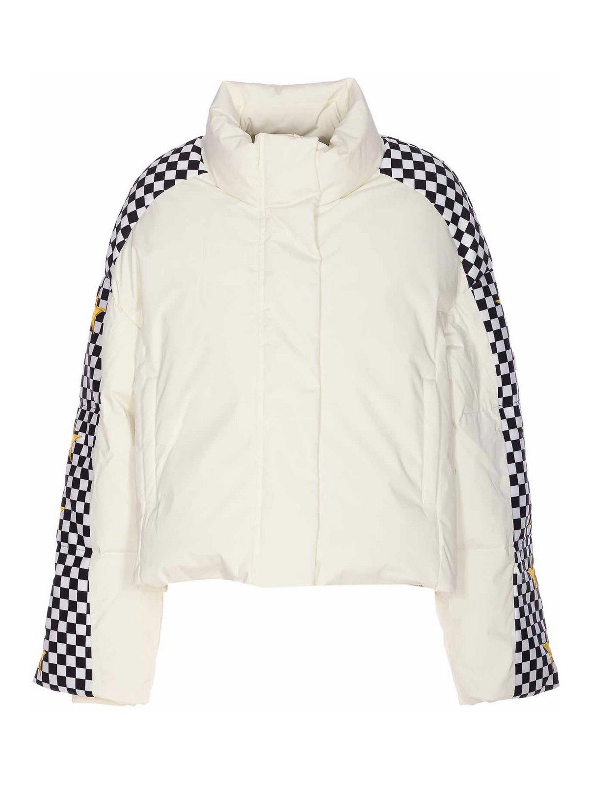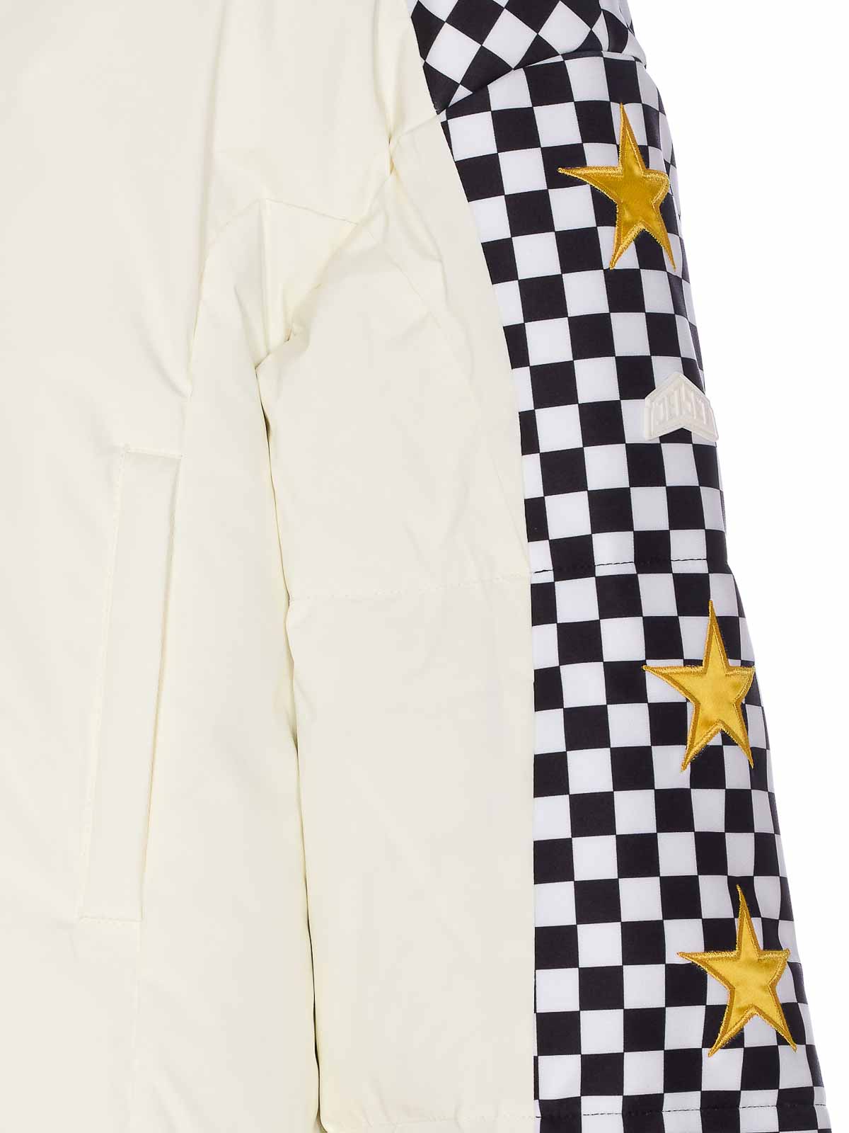 Piumino jet set bianco michele ski con chiusura frontale con zip e bottoni, maniche lunghe, tasche con zip, imbottito, patch logo laterale, patch stelle sulle maniche, imbottito, collo alto