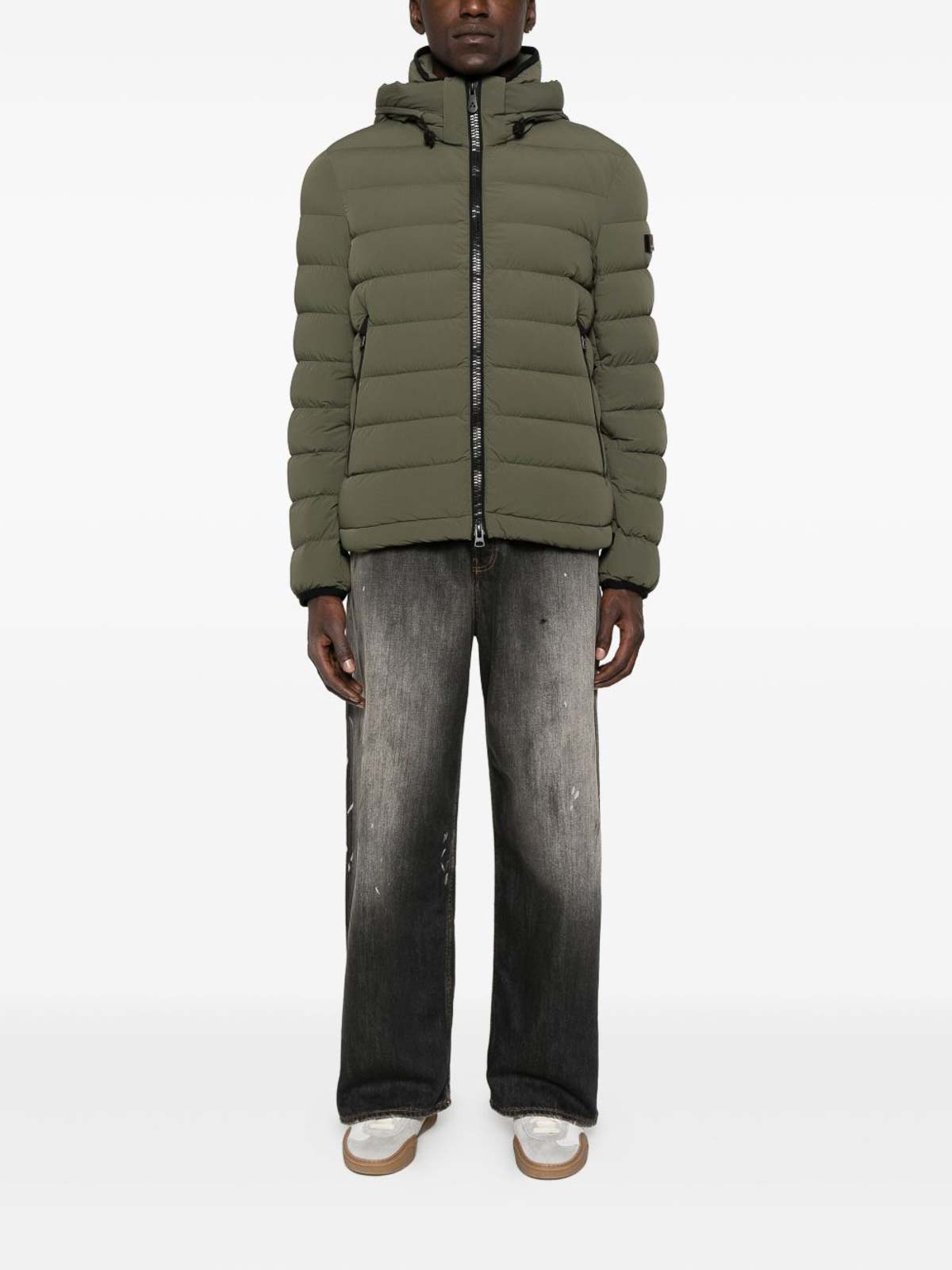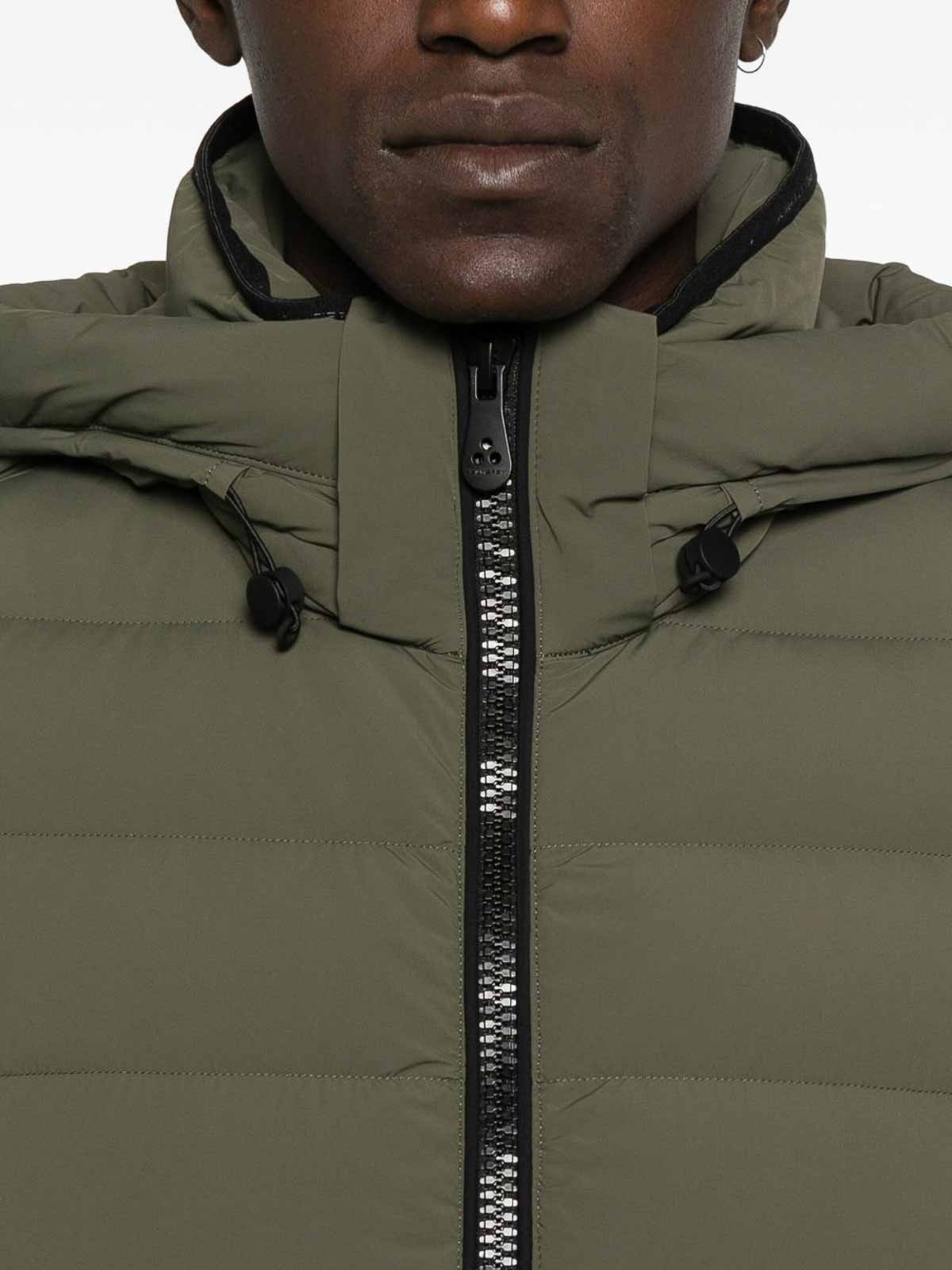 Piumino trapuntato con cappuccio caratteristiche verde militare design trapuntato scollo con cappuccio con zip tasche con zip maniche lunghe