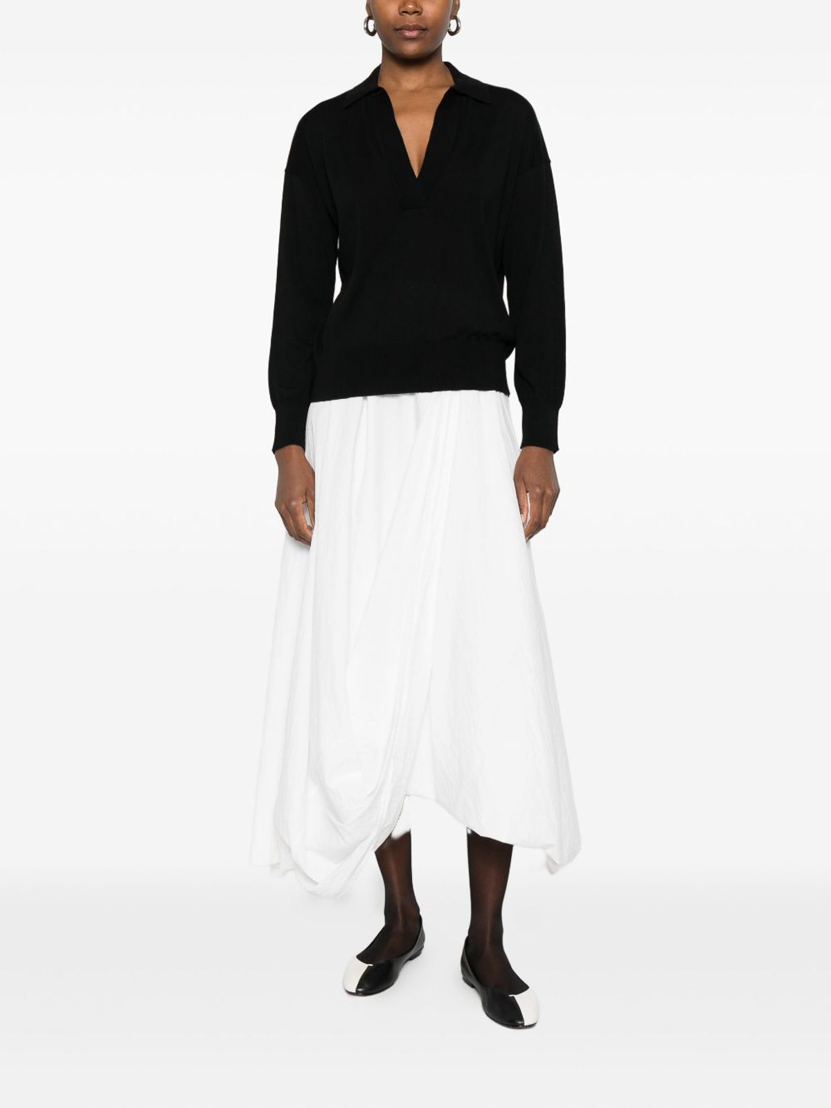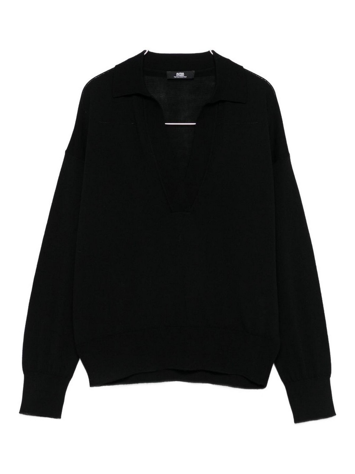 Maniche a coste e orlo nere con collo a v-collo e orlo