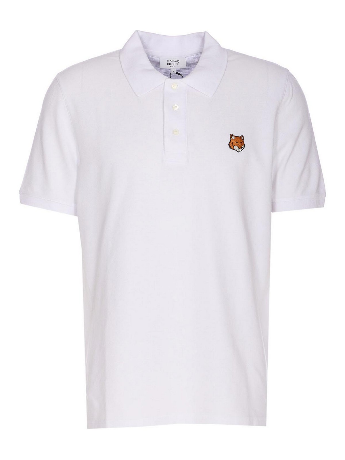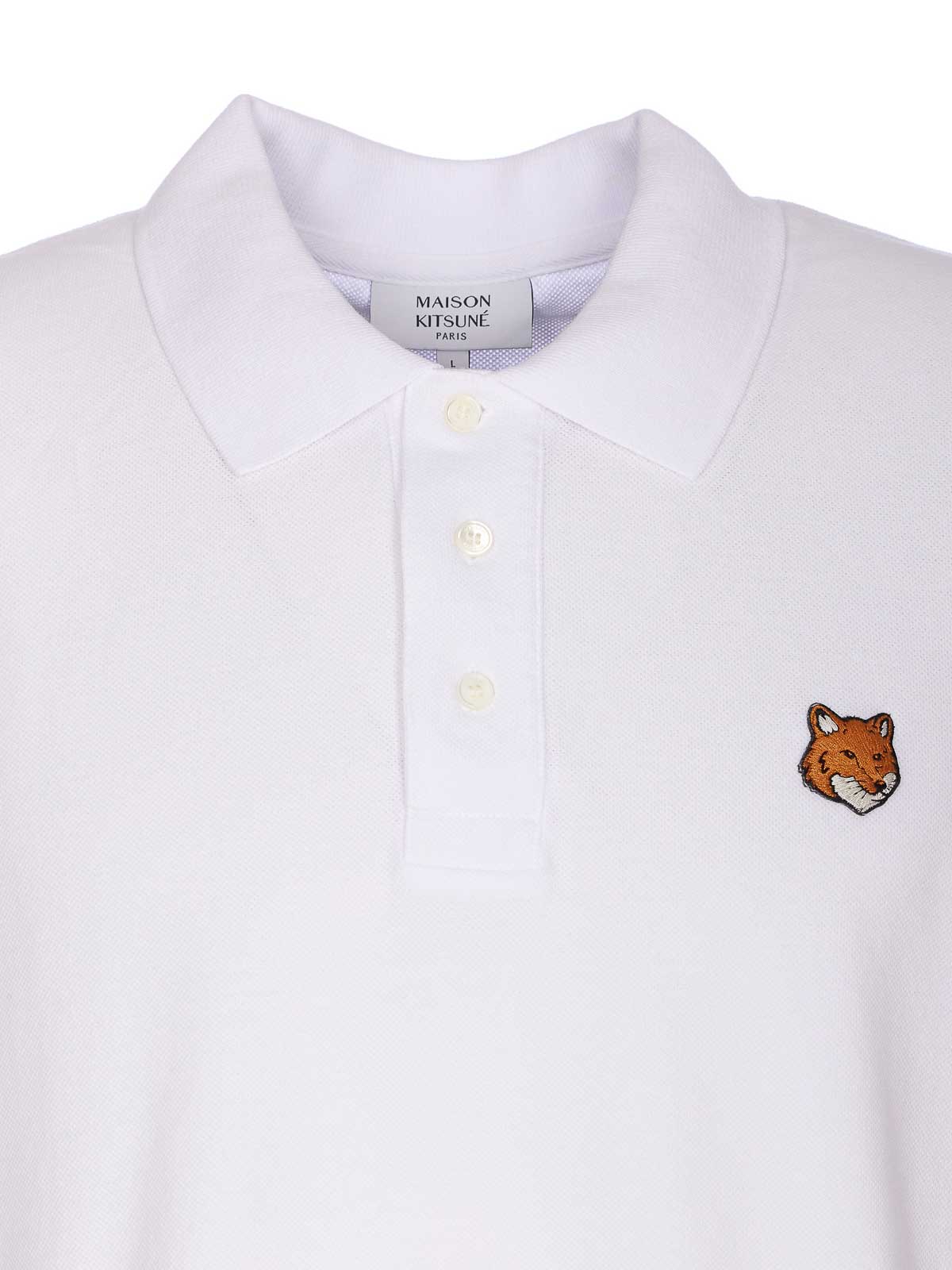 Polo bianca Maison kitsune', chiusura con bottoni, patch logo testa di volpe sul davanti