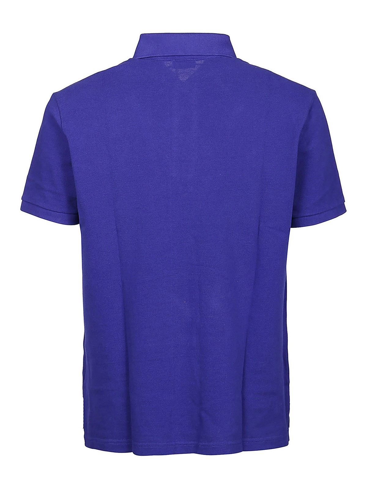 Polo in piquet di cotone con logo a contrasto ricamato sul petto, spacchi laterali e interno del cannoncino multicolore.