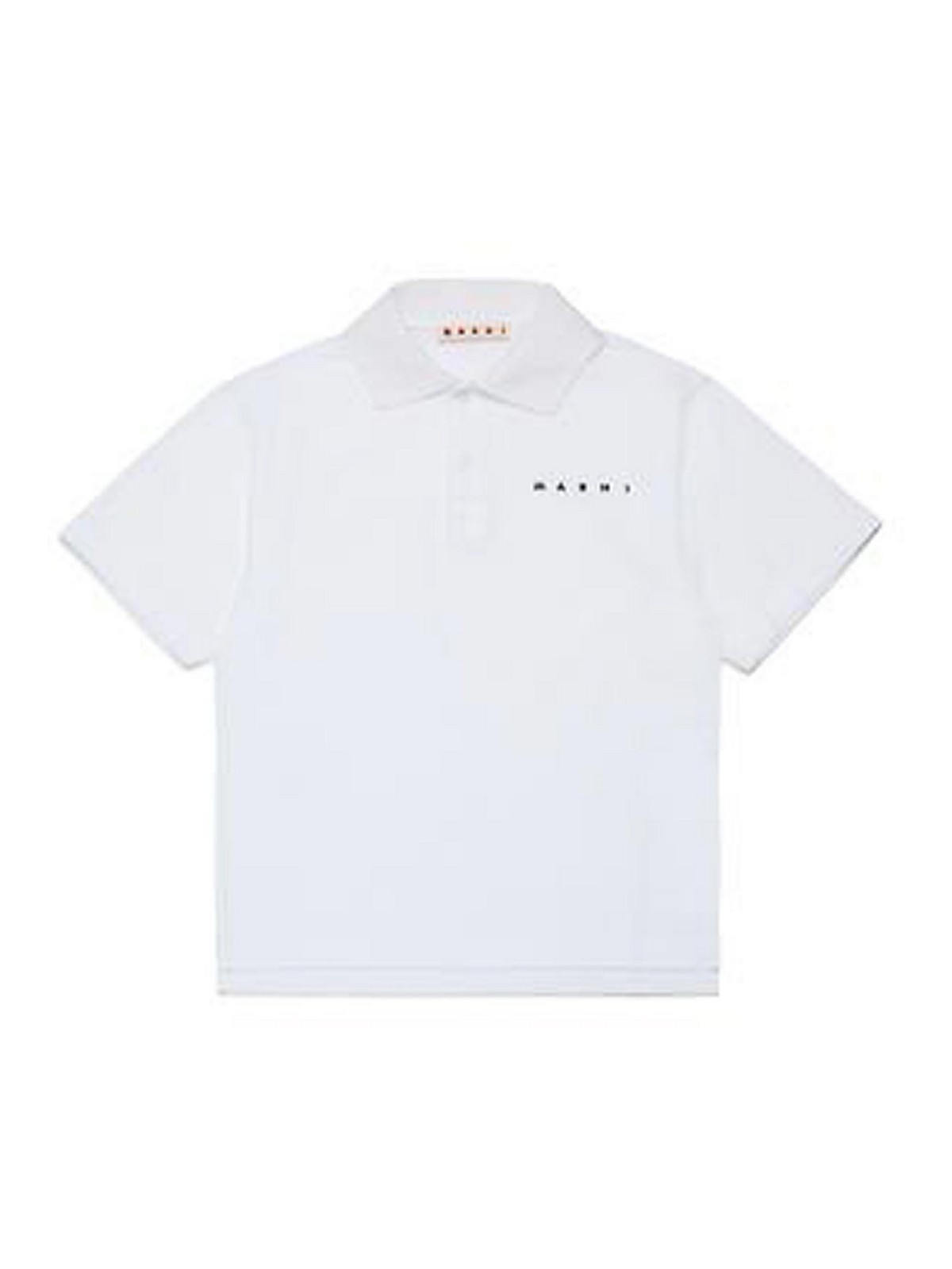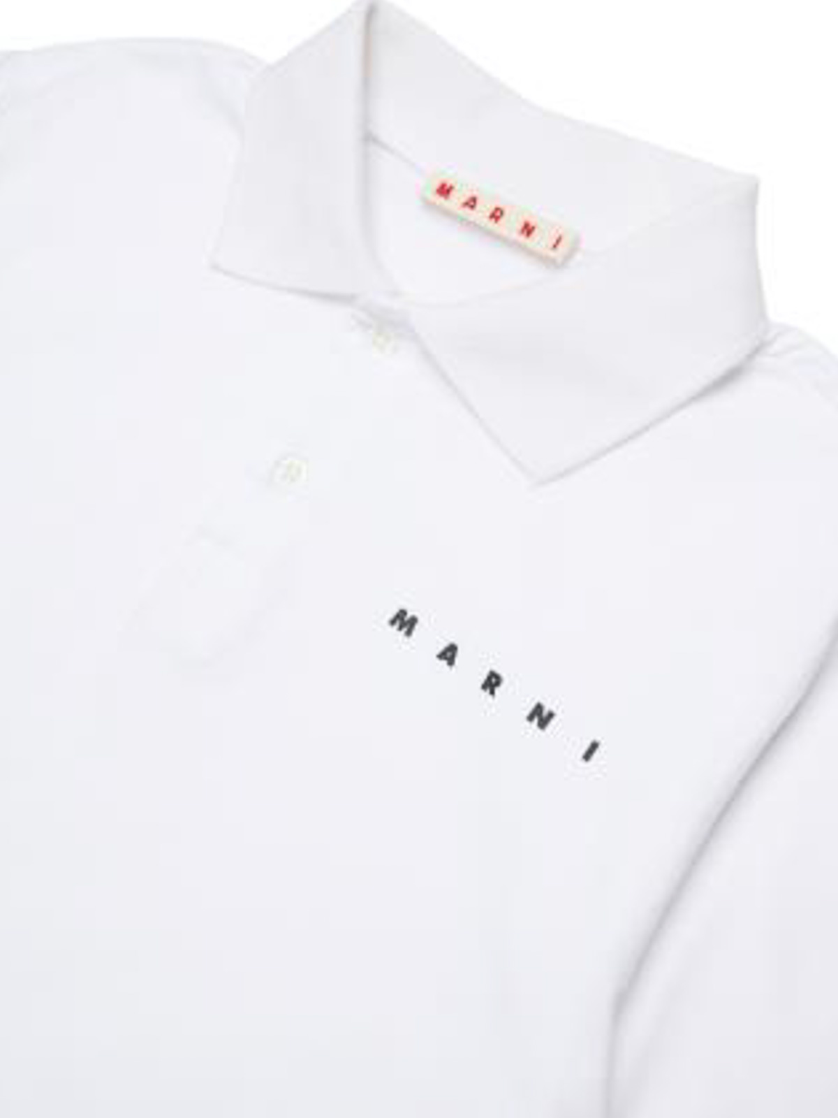 Bianco logo colletto classico maniche corte design con abbottonatura