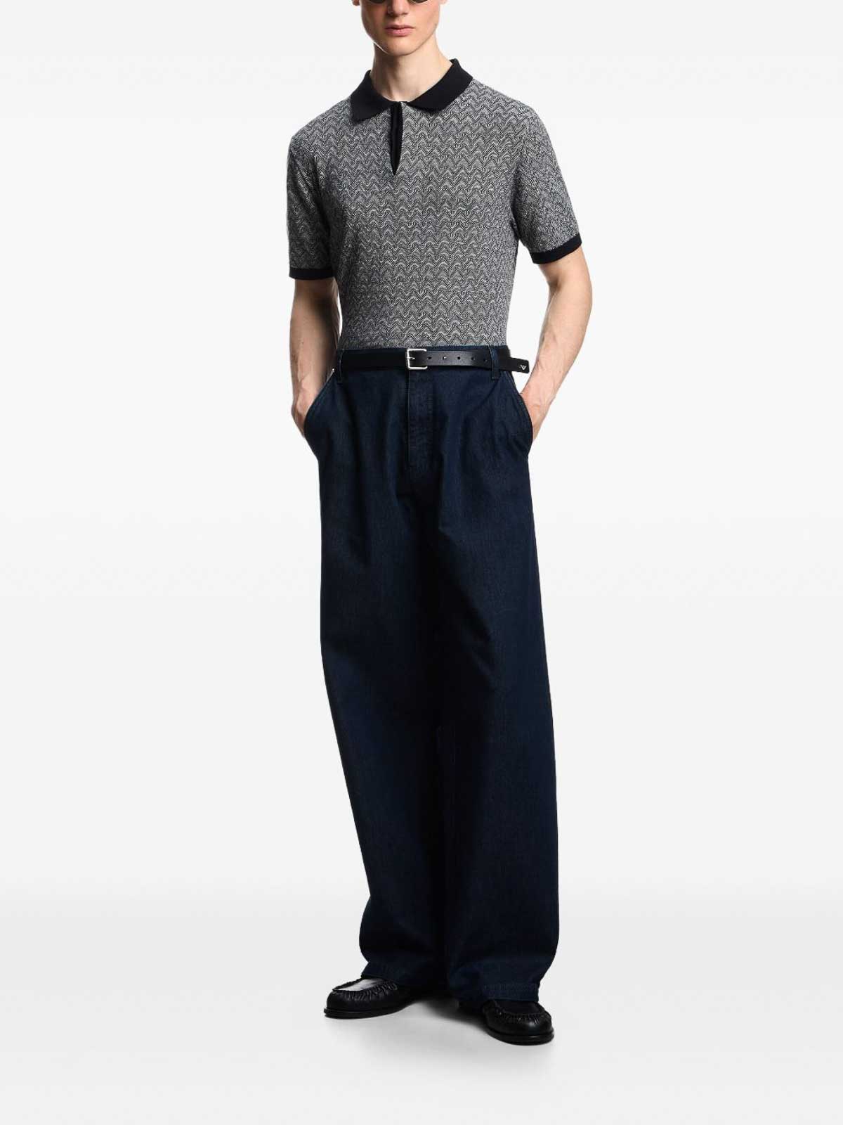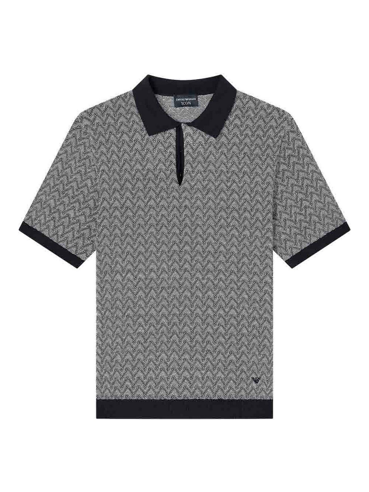 Maniche corte con motivo chevron grigio, chiusura con bottoni nascosti, orlo a coste in misto cotone