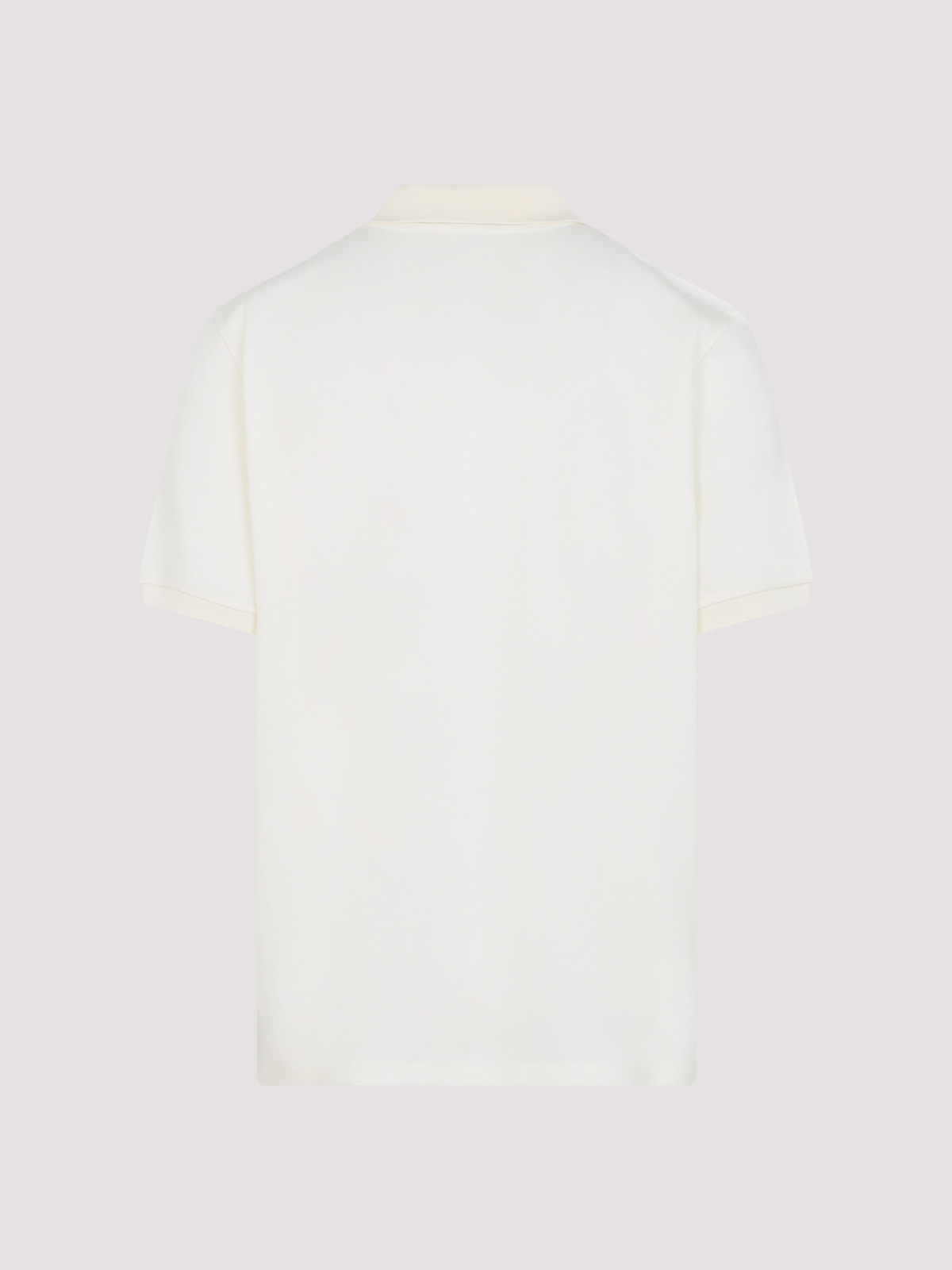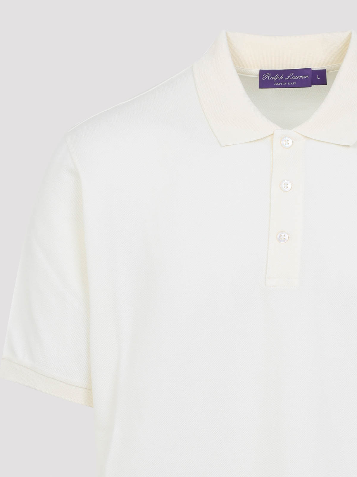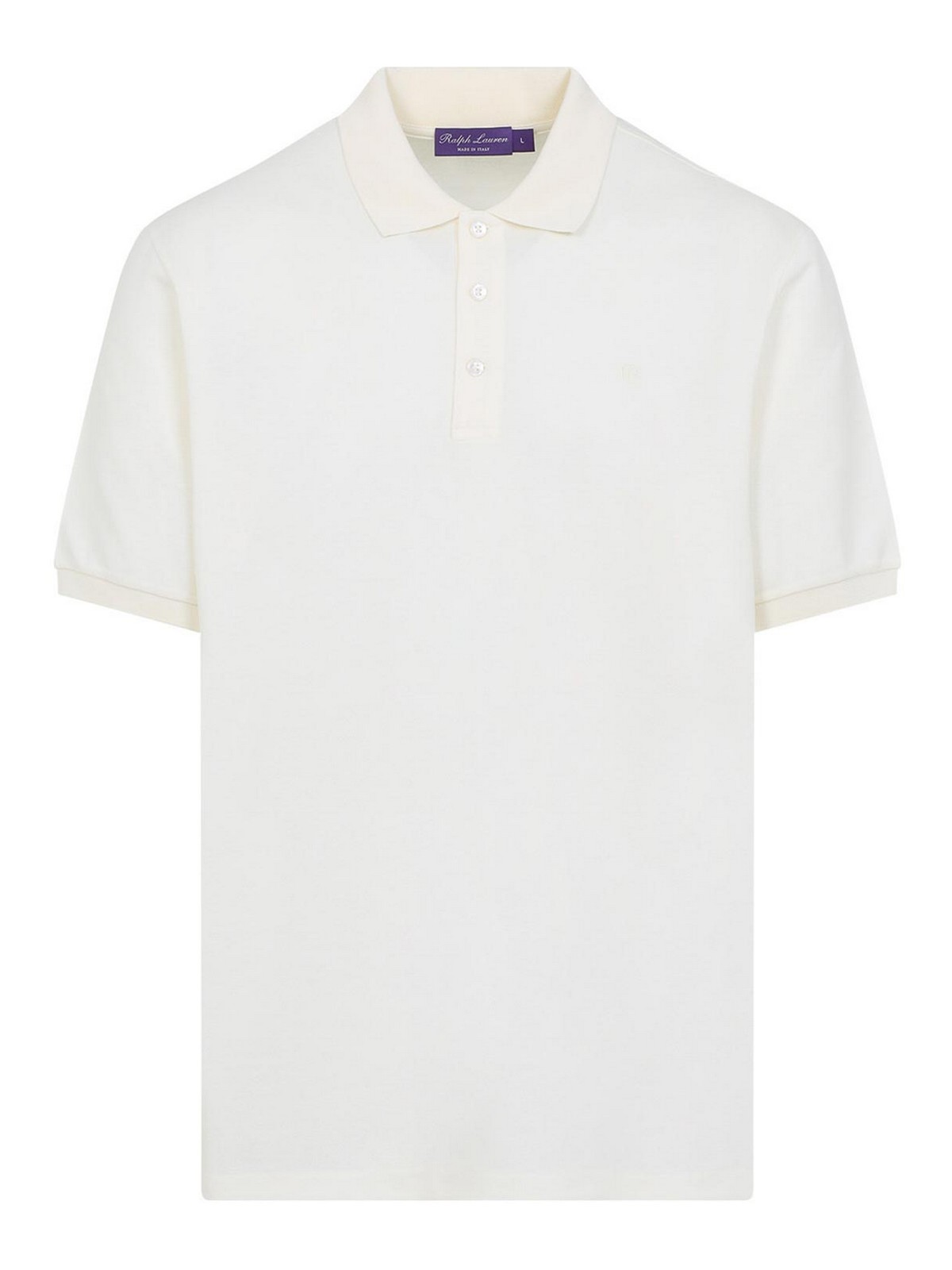 Polo Ralph Lauren in cotone color crema a maniche corte con etichetta viola. cotone panna, colletto polo, abbottonatura classica con chiusura a tre bottoni, maniche corte, fondo dritto.