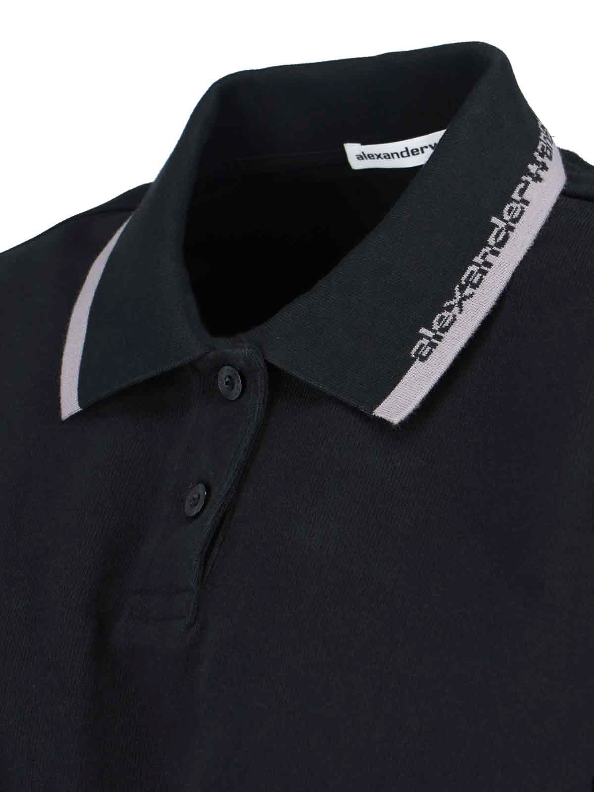 Polo logo alexander wang, in cotone nero, colletto classico, spalle scese, chiusura bottoni, dettaglio logo a contrasto, finiture a costine, orlo dritto.
