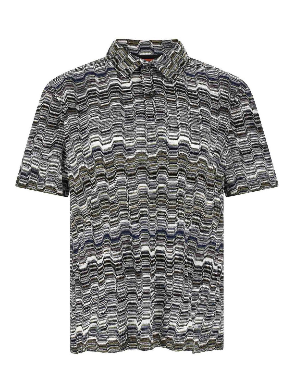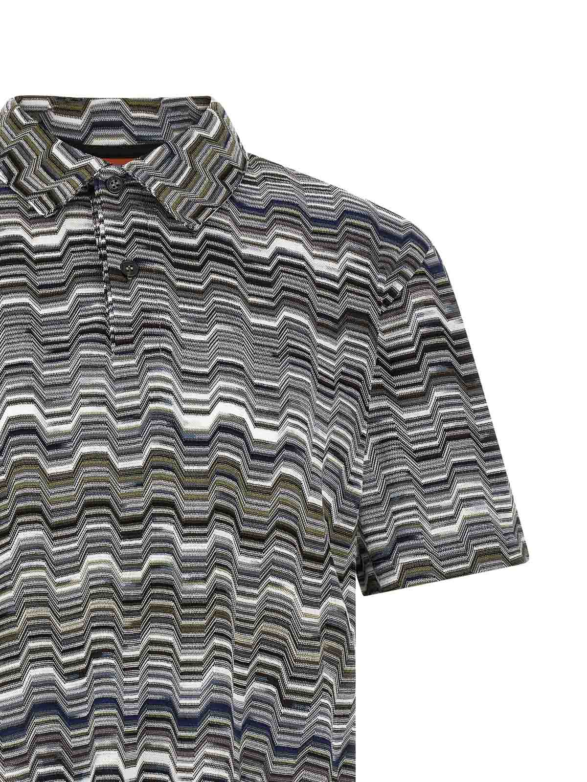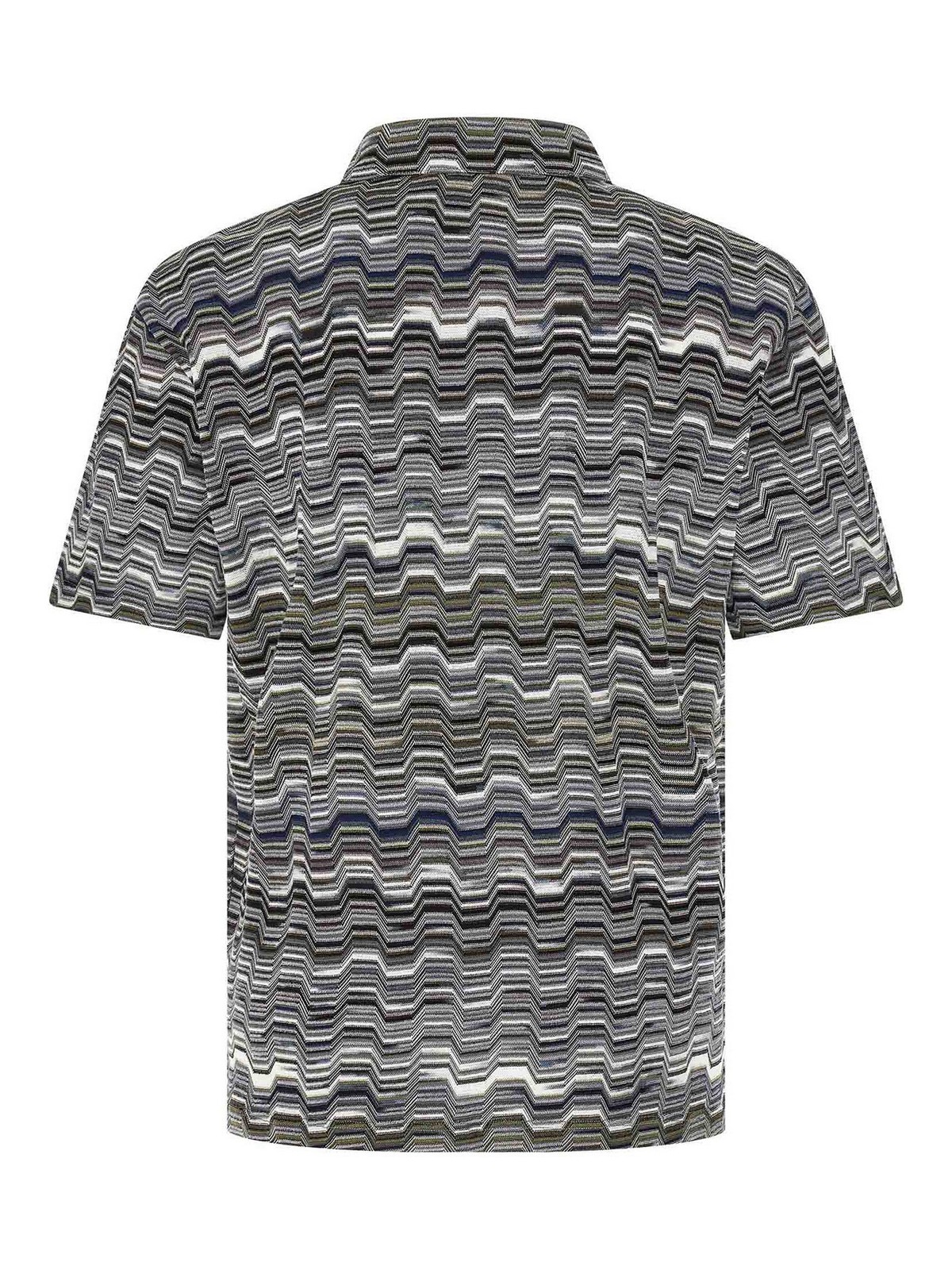 Polo in cotone lavorata a zig zag jacquard irregolare, colletto e bottoni, maniche corte.
