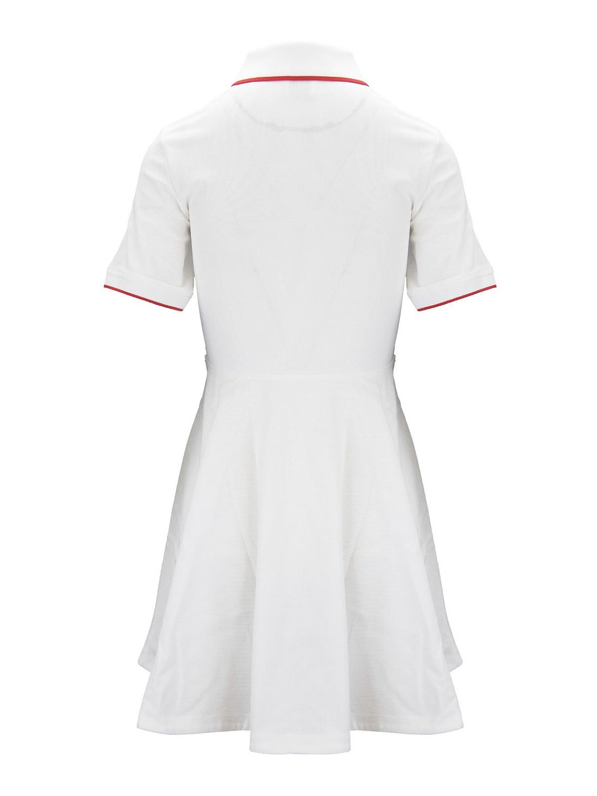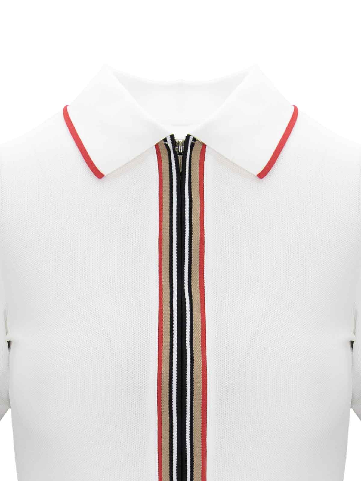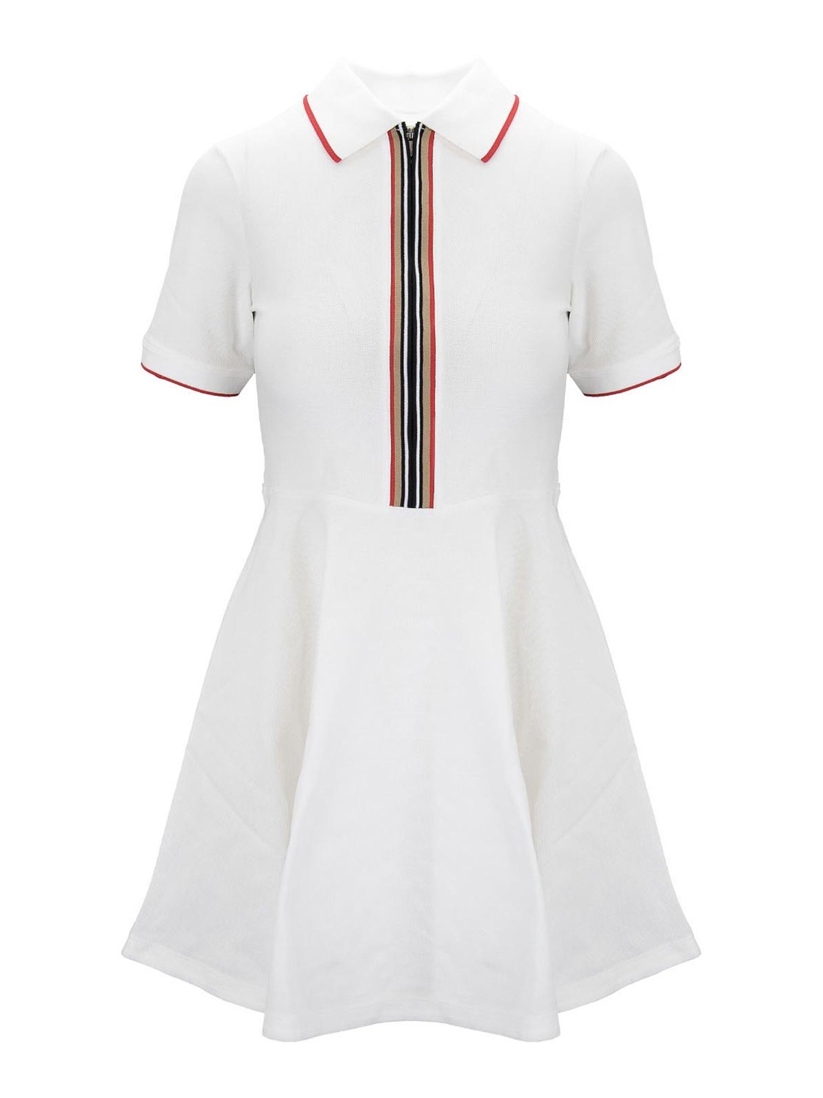 Polo/abito corto da donna firmata burberry. tessuto principale realizzato 100% in cotone. colletto e polsini realizzati 96% in cotone e 4% in elastan. dettagli realizzati 87% in poliestere, 12% in poliammide e 1% in elastan. polo con colletto classico a maniche corte. gonna svasata sul fondo. chiusura tramite cerniera.