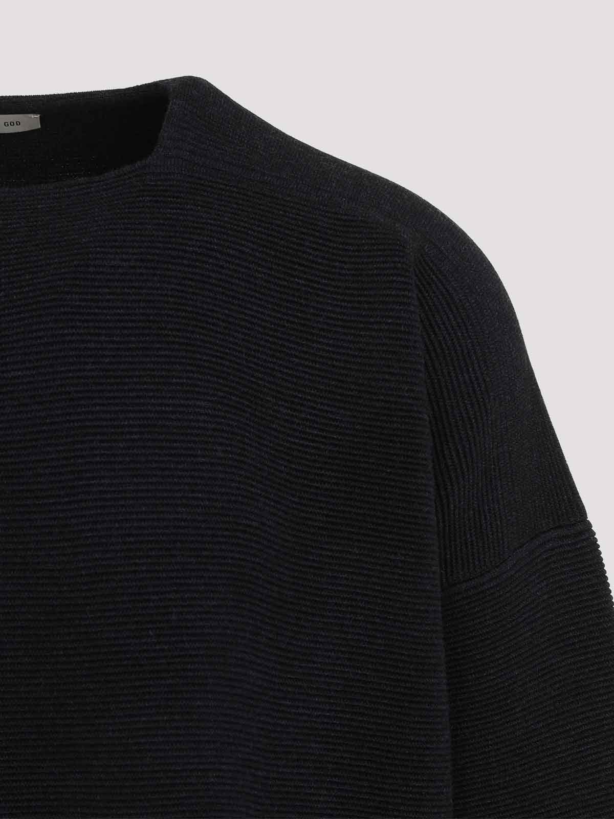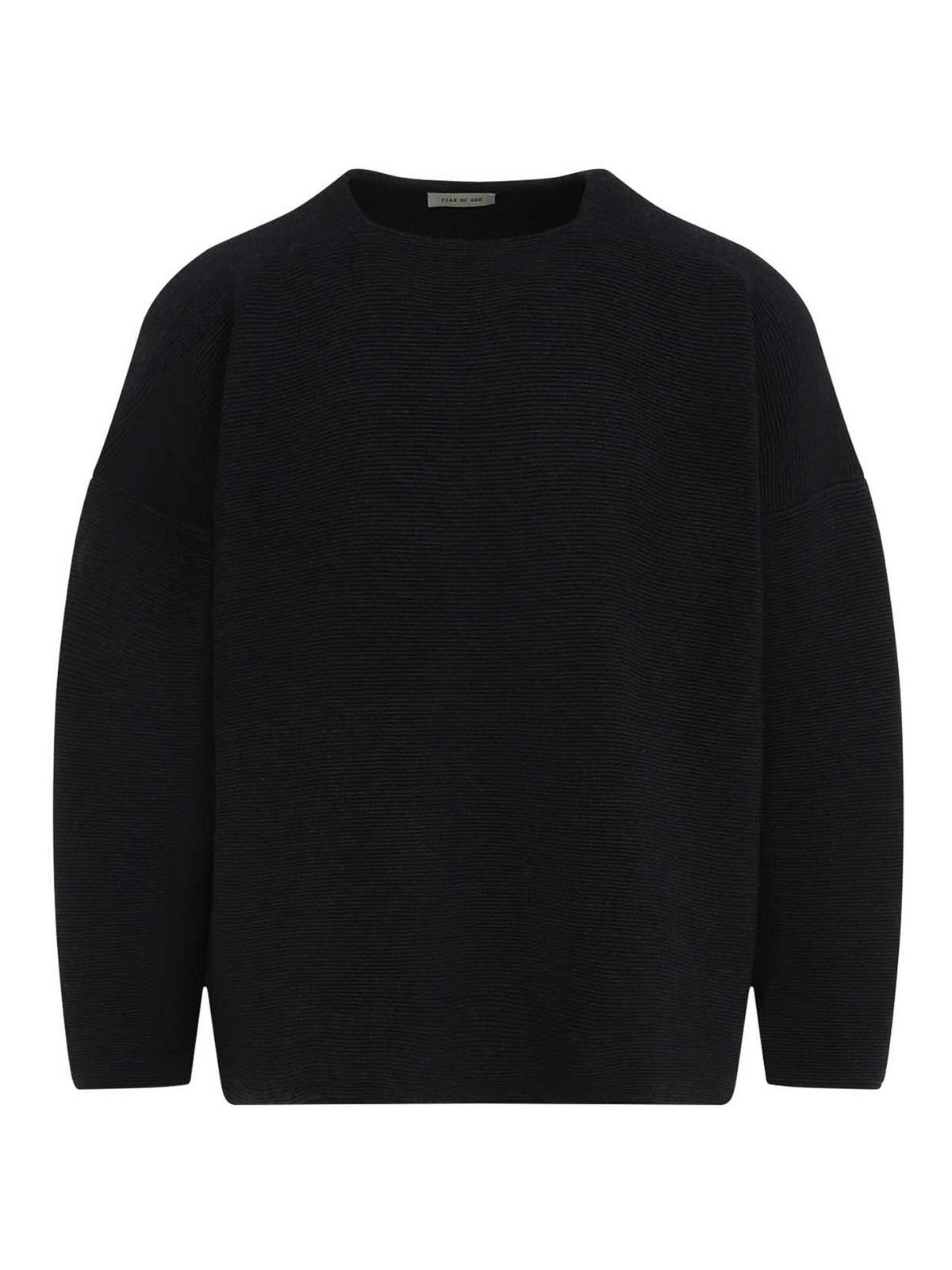 Maglione Fear of God Ottoman in lana vergine nera con scollo dritto. Realizzato in lana vergine nera, con coste orizzontali su tutta la superficie, scollo rotondo, spalle scese, maniche lunghe, orlo dritto.