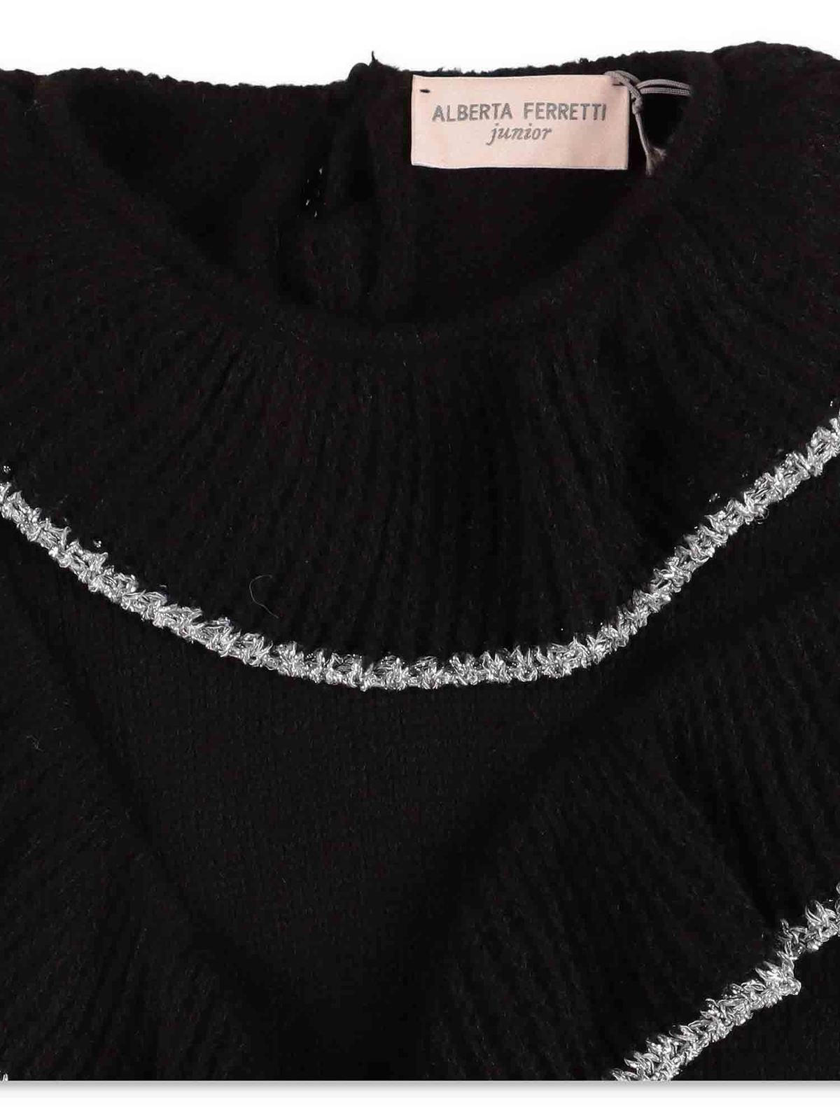 ALBERTA FERRETTI: maglieria - Pullover nero con rouches