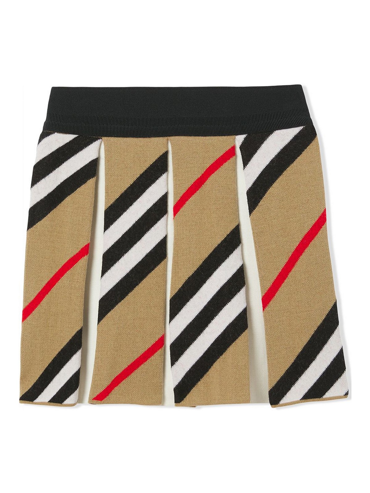 Gonnellina svasata lavorata a maglia in misto lana caratterizzata da pieghe a cannoncino il modello decorato da uninterpretazione grafica del nostro iconico motivo a righe - gonna-