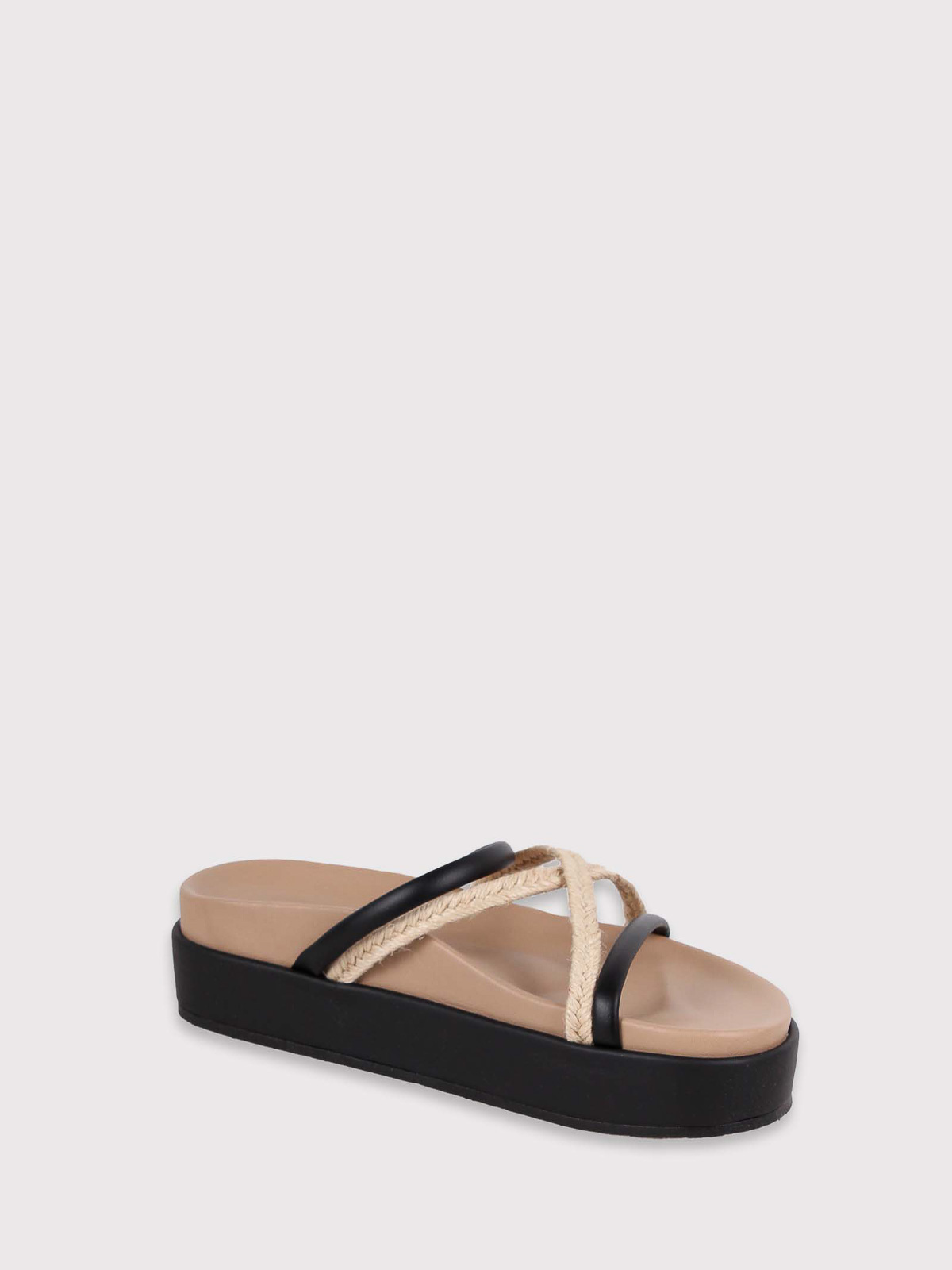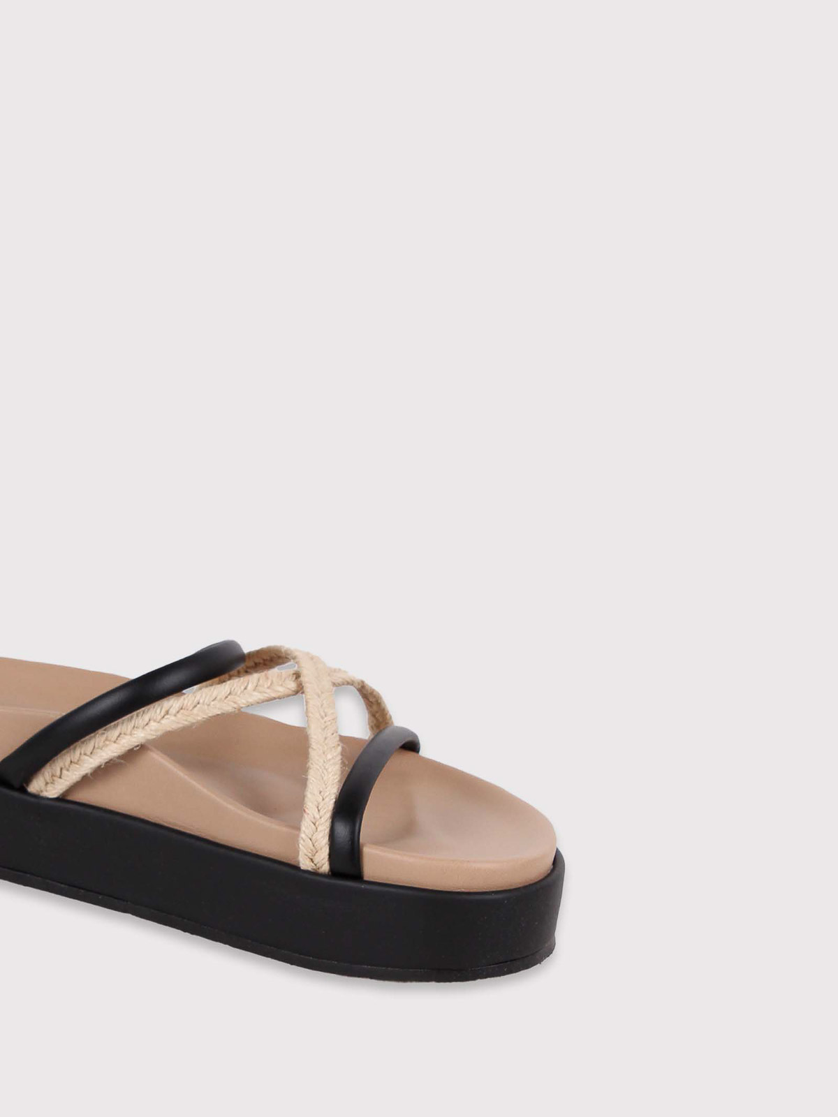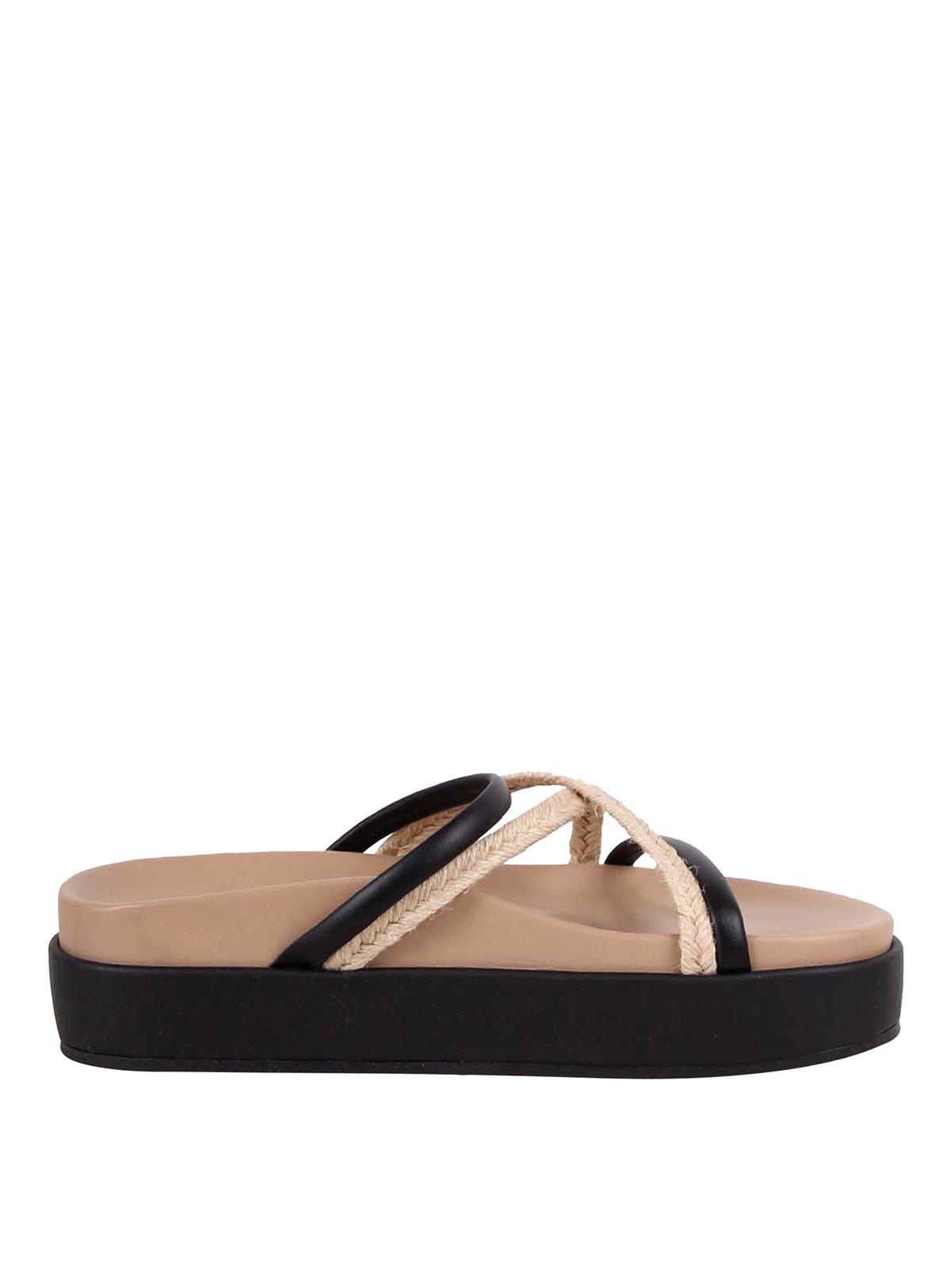 sandali aba di ancient greek sandals. tomaia in corda naturale, due cinturini in pelle, cinghie di corda incrociate, suola imbottita.