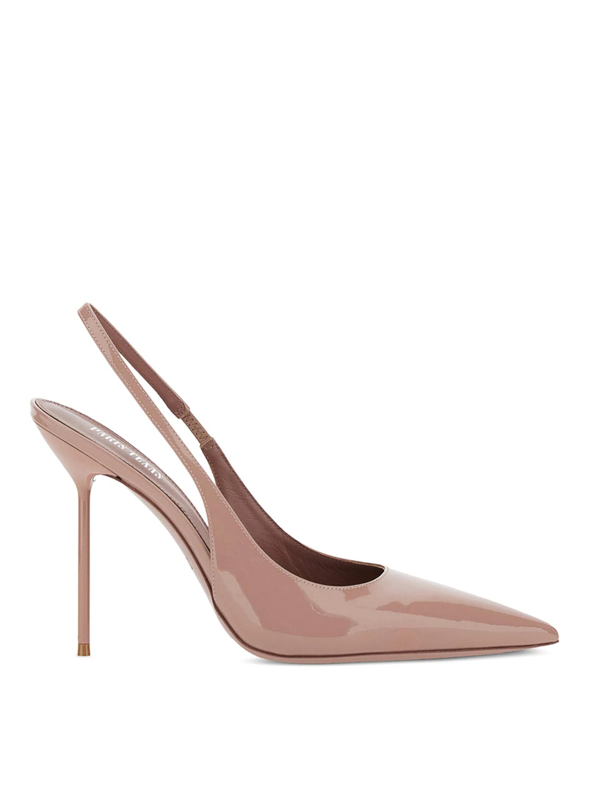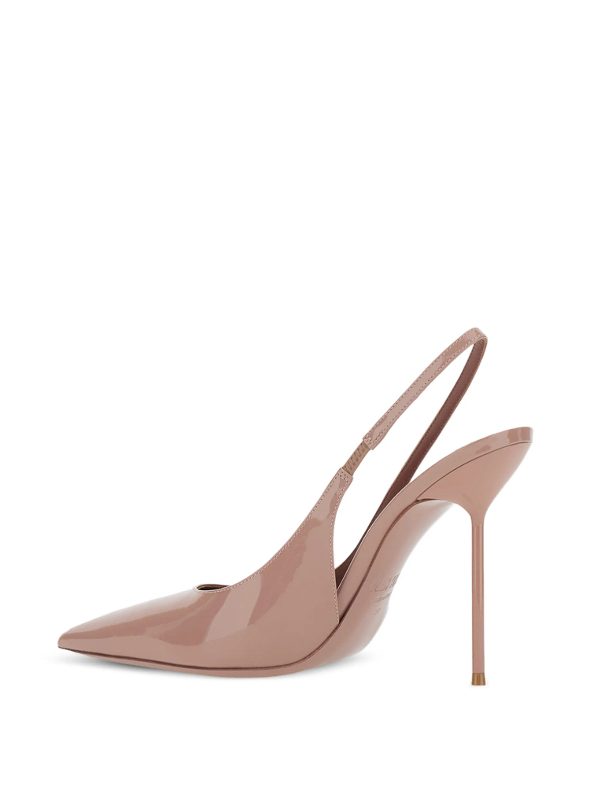 Slingback rosa poudre elasticizzato, suola in cuoio, plantare logato, tacco alto a stiletto