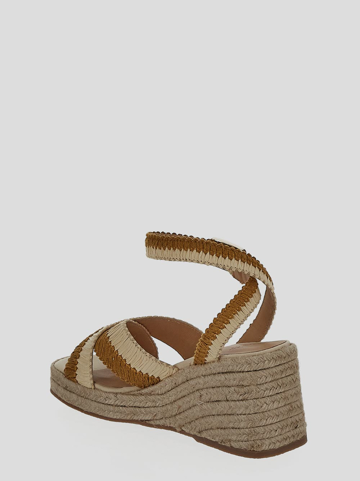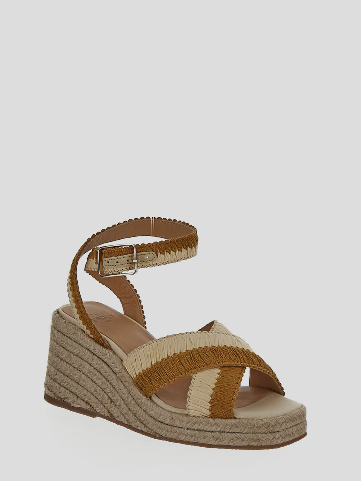 Sandalo con zeppa Castaner in cotone senape e fieno naturale