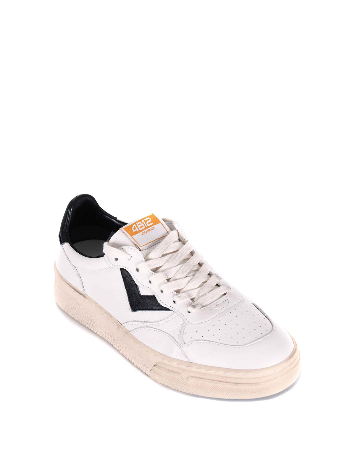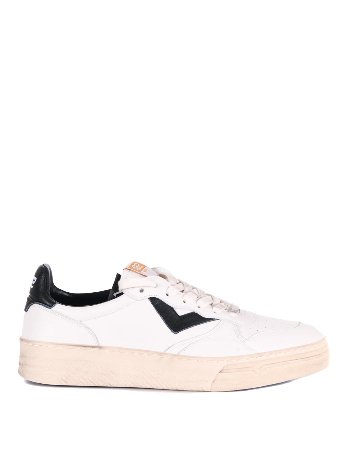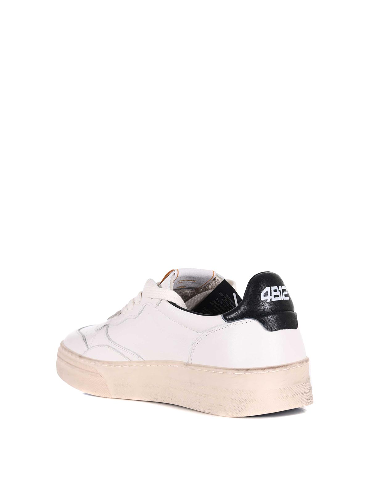 Sneakers 4b12 in pelle bianca e nera. effetto vintage con zone volutamente colorate. lacci volutamente macchiati. suola in gomma effetto used con zone macchiate. taglia visibile in foto: 41 100% pelle